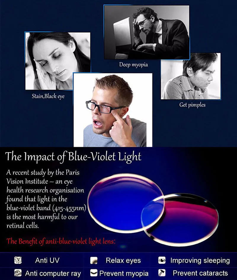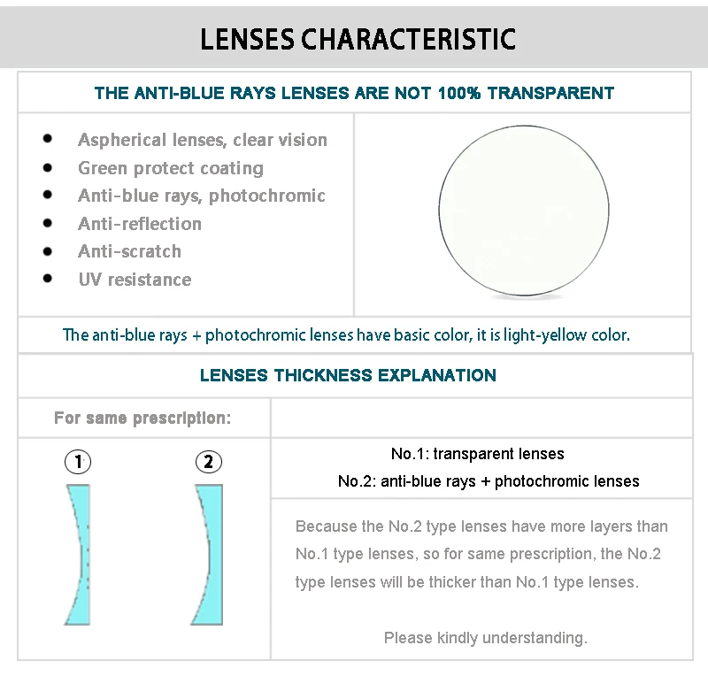 (3) Анти-Синие лучи + фотохромные линзы не являются 100% прозрачными,