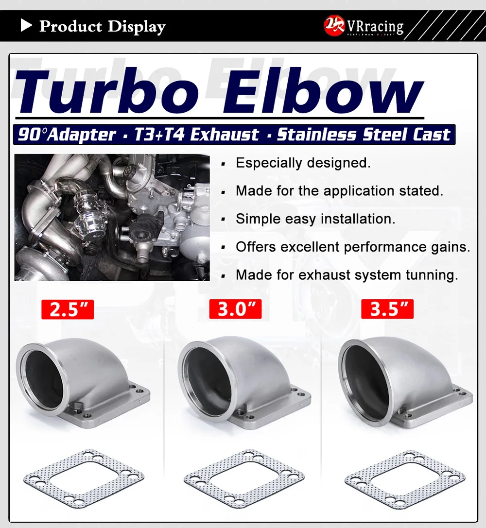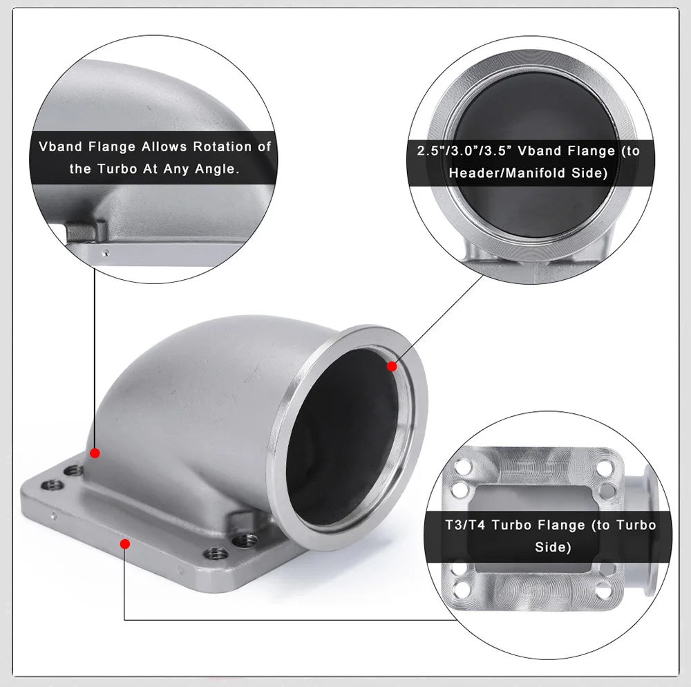 VR-2,5 "3,0" 3,5 "Vband 90 градусов для модели" Cast Turbo "колено адаптер фланец 304 нержавеющая сталь для турбокомпрессора T3 T4