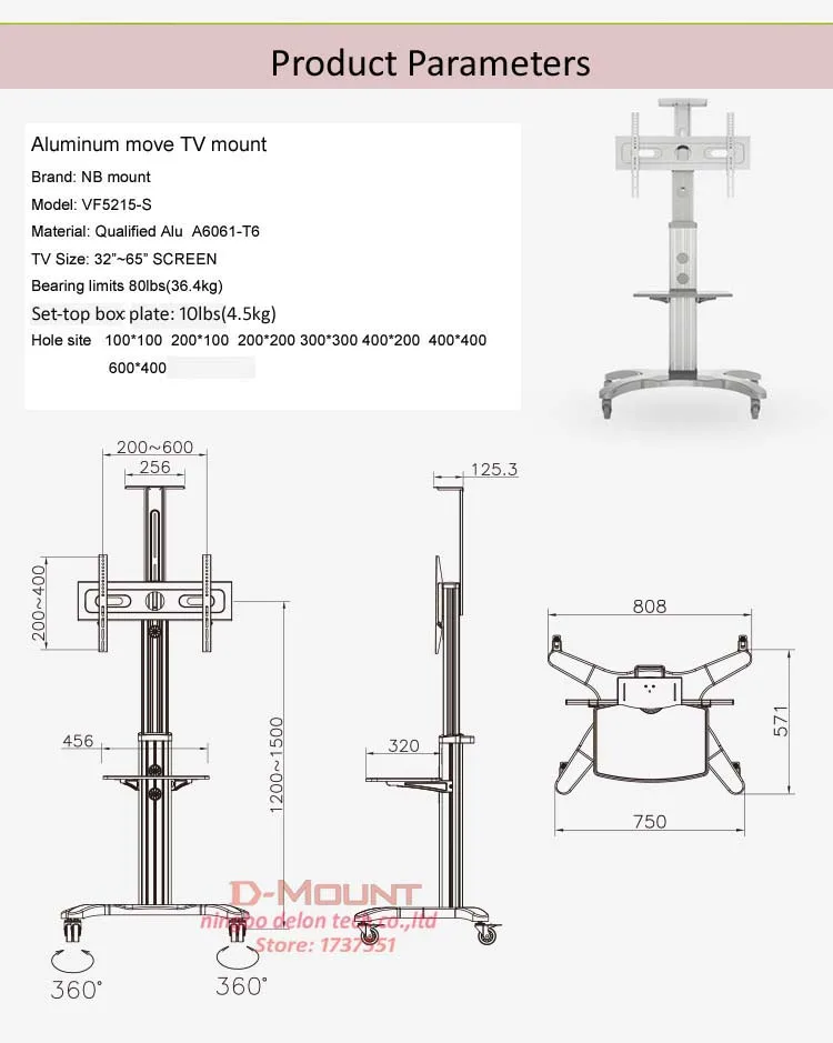 Передвижная ТВ напольная тележка для 32 "-65"