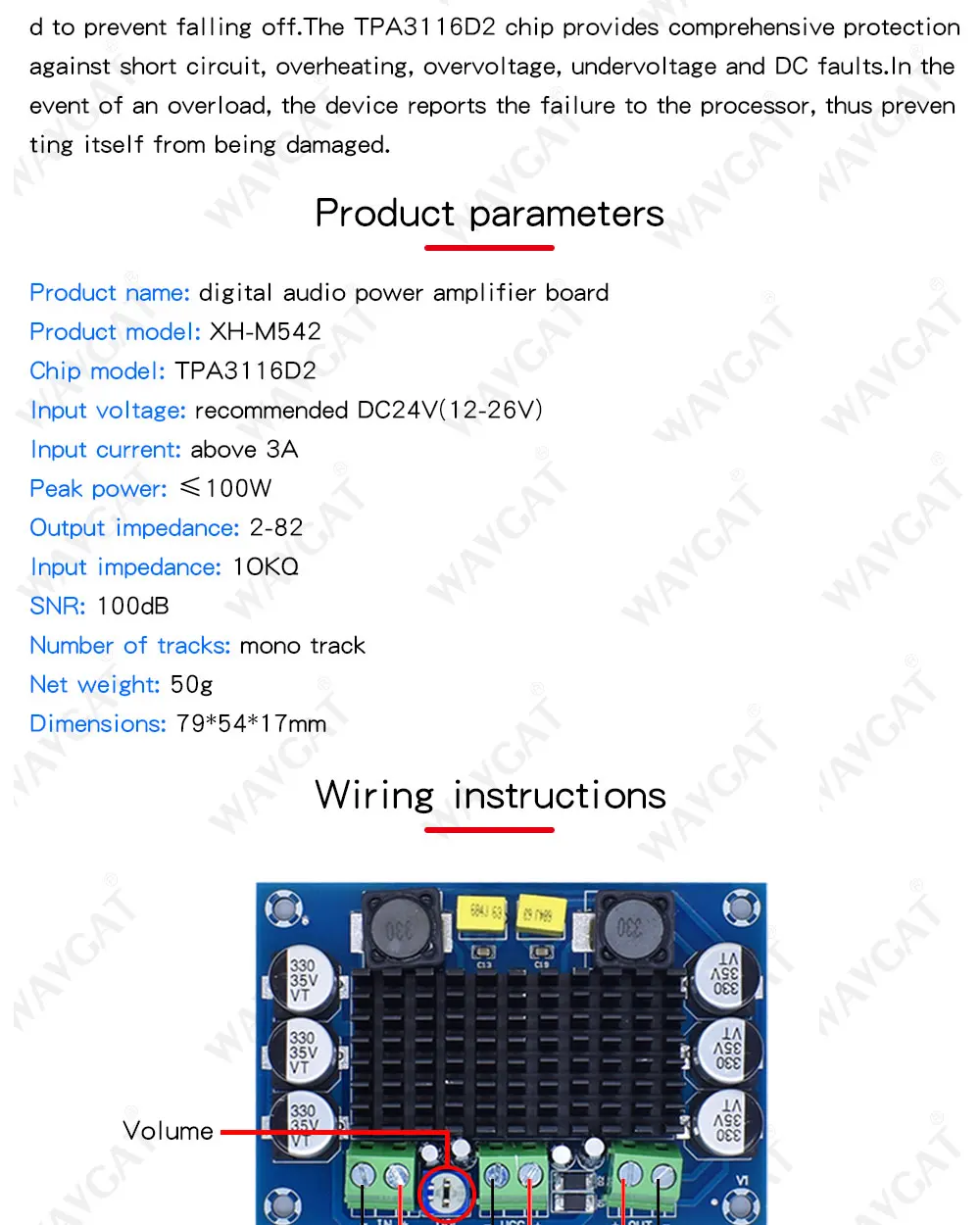 Плата усилителя сигнала WAVGATG TPA3116 D2 TPA3116DA DC 12 В 24 в 100 Вт одноканальный цифровой