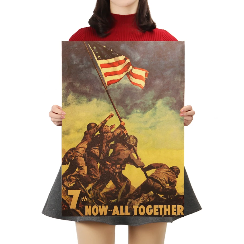 Название: TIE LER, поднимающий флаг на Iwo Jima, ретро постер из крафт-бумаги, декоративная картина для интерьера бара, кафе, наклейка на стену