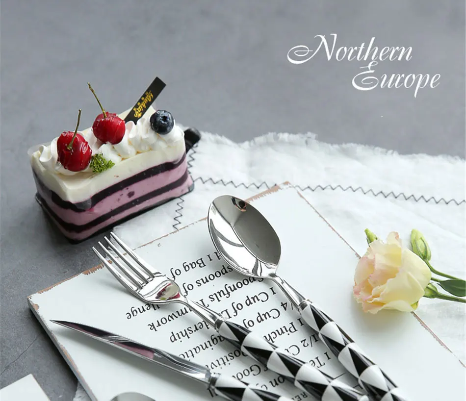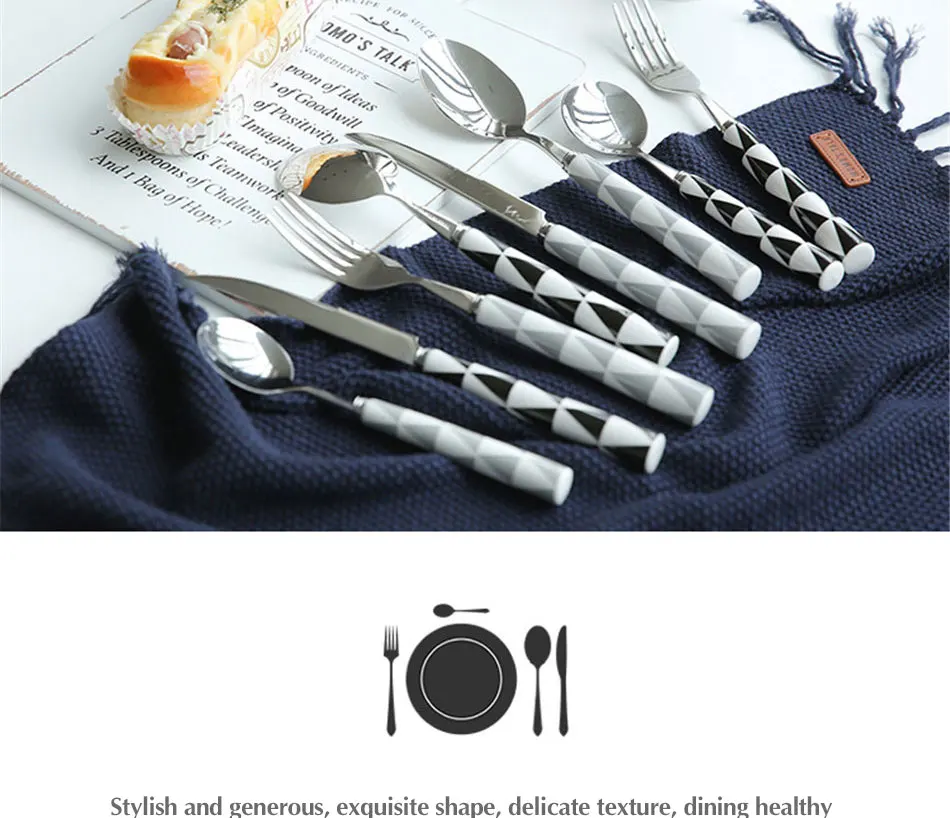 Европейский геометрический треугольный столовый набор, керамический столовый нож, вилка, роскошные столовые приборы, качественный Западный пищевой набор из 4 предметов