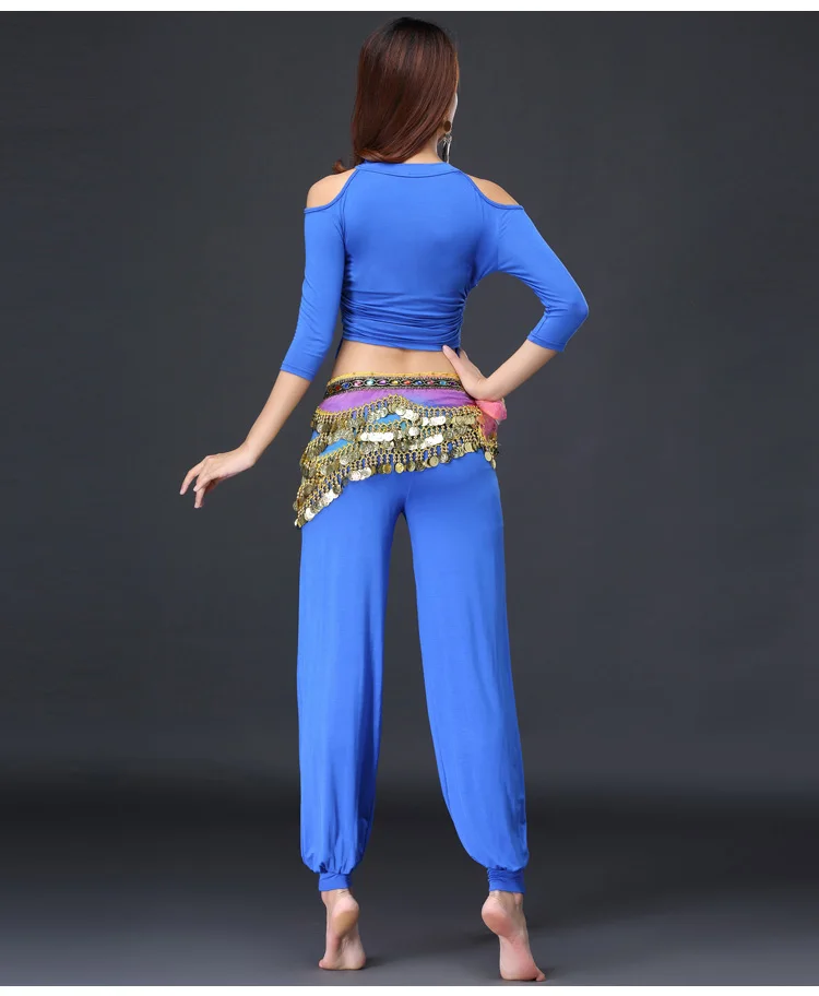 Новый дизайн, костюм для танца живота, топ с длинными рукавами, брюки и пояс для монет, одежда для танца живота