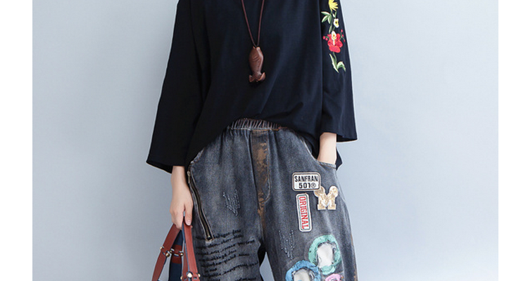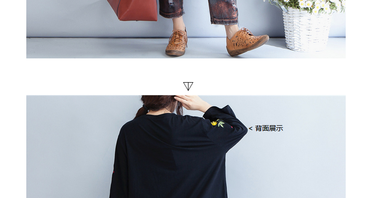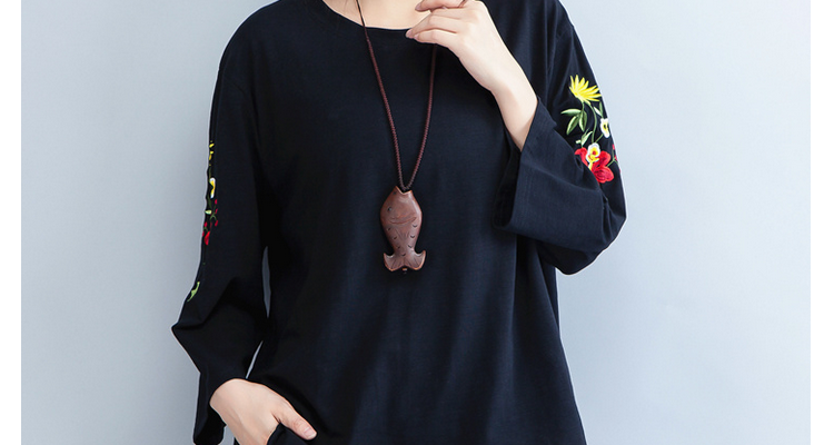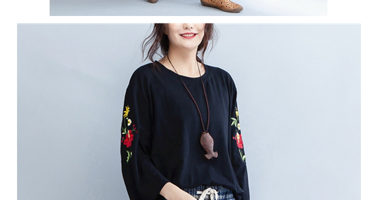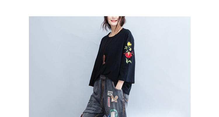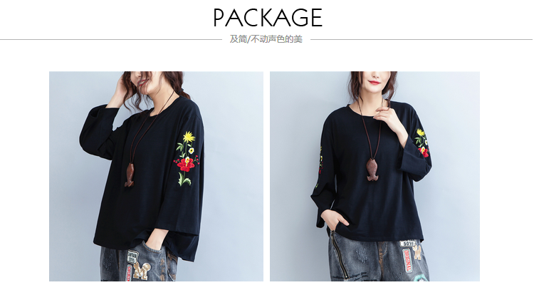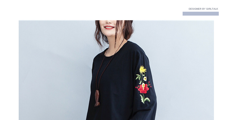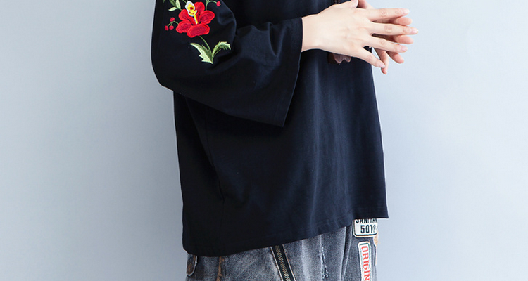 Женские футболки пуловеры топы футболки Черный Плюс Размер вышивка цветочный принт длинный рукав хлопок женская одежда свободные по размеру D мода