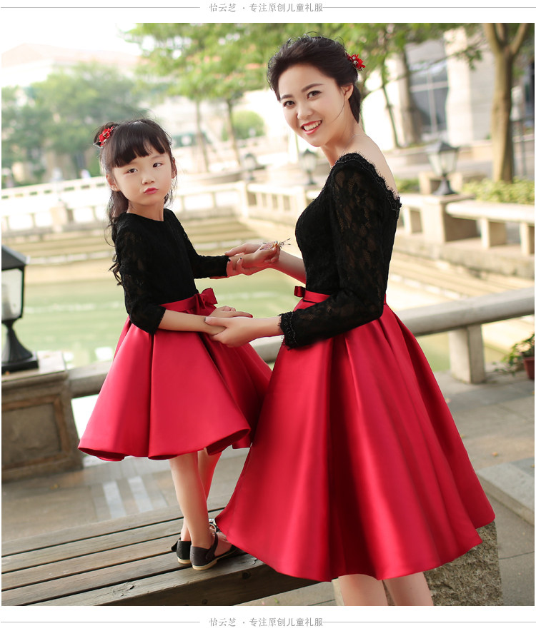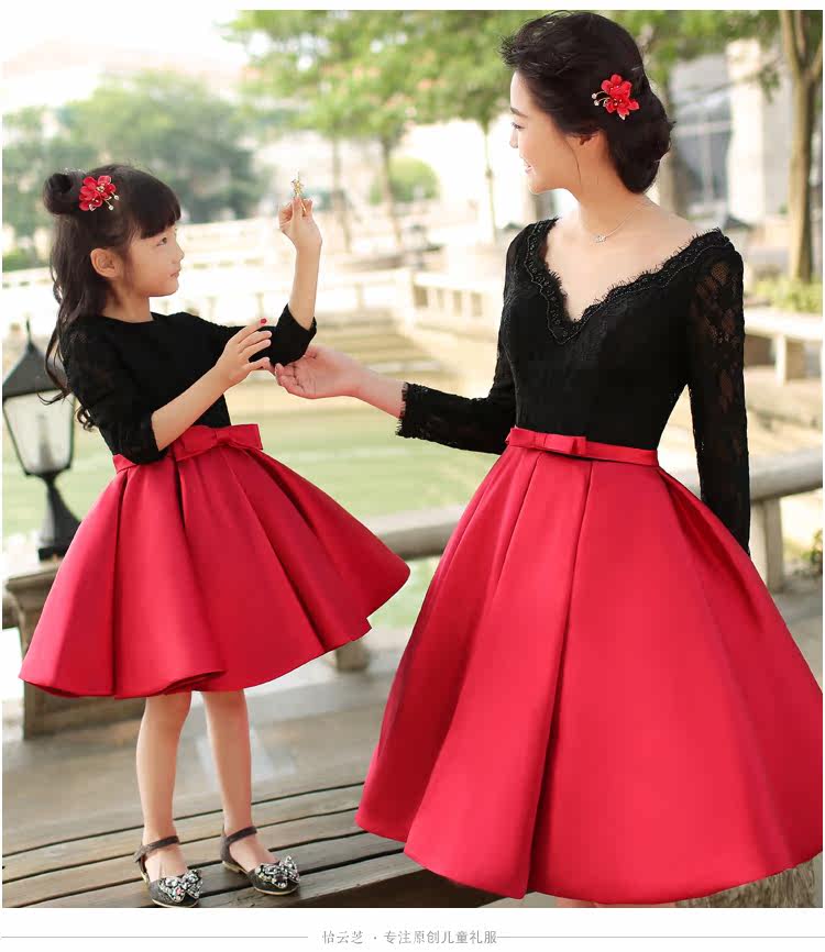 Платье для маленьких девочек платье-пачка с длинными рукавами и бантом Бальные платья принцессы, платья для мамы и дочки кружевная Одинаковая одежда для всей семьи