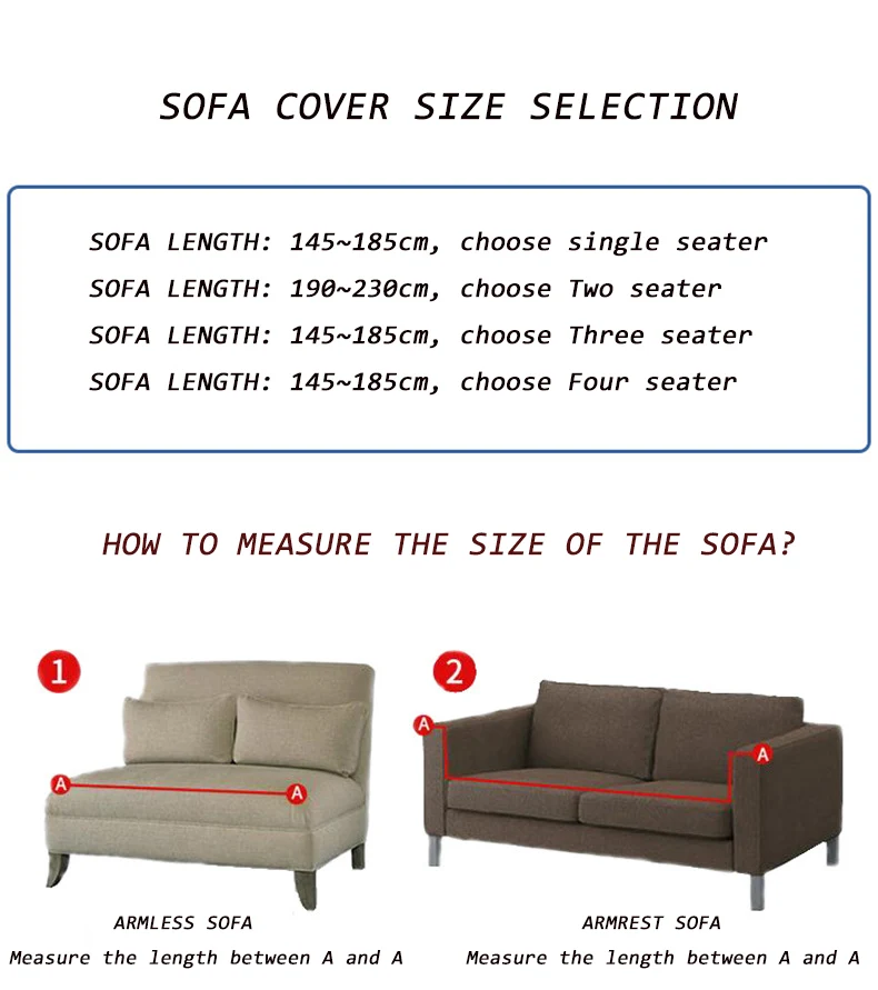 Название: наборы чехлов для дивана Материал: полиэстер характеристики: на одно сидение: (для 90 - 145 см) на два места: (для 150-185 см) на три места: (для 190-230 см) четыре места: (для 235 - 300 см) Примечание: Этот продукт называется чехлом для дивана, подходит для дивана около 90% стиля, Диванная подушка и спинка или подушка на сиденье длиной 1-3 см и выше, можно вставить в противоскользящее покрытие перед фиксацией. Из-за проблем с транспортировкой на большие расстояния товар будет немного складываться, продукт не будет таким плоским, как на картинке, но это не повлияет на использование