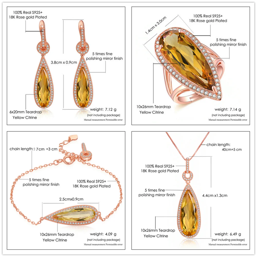 [Тип товара]: натуральный цитрин из стерлингового серебра 925 пробы, ювелирные наборы