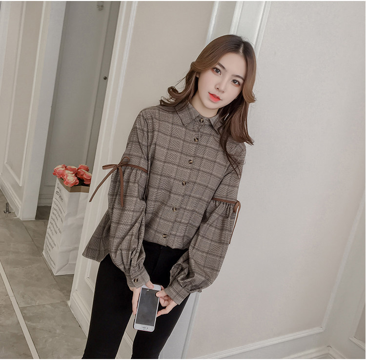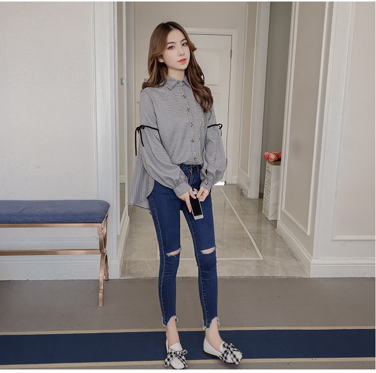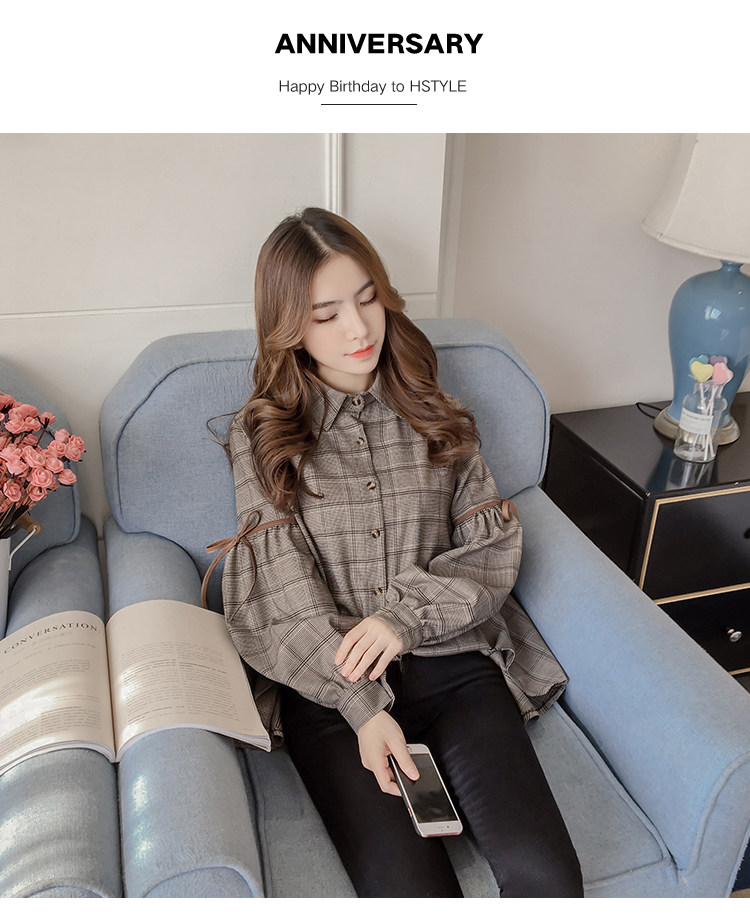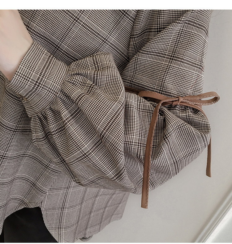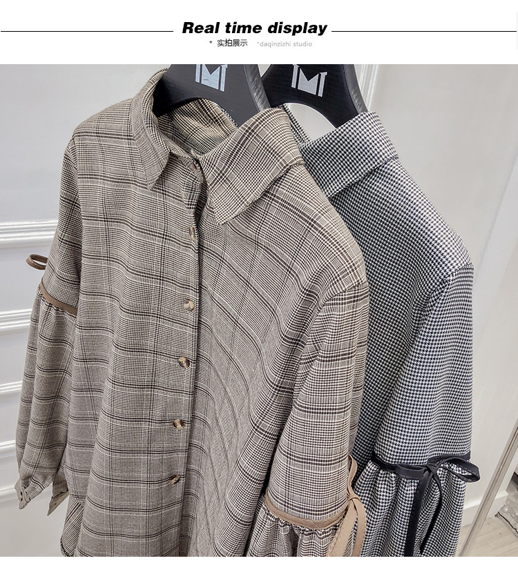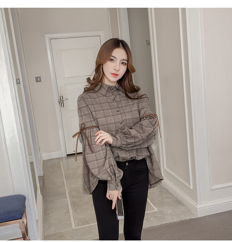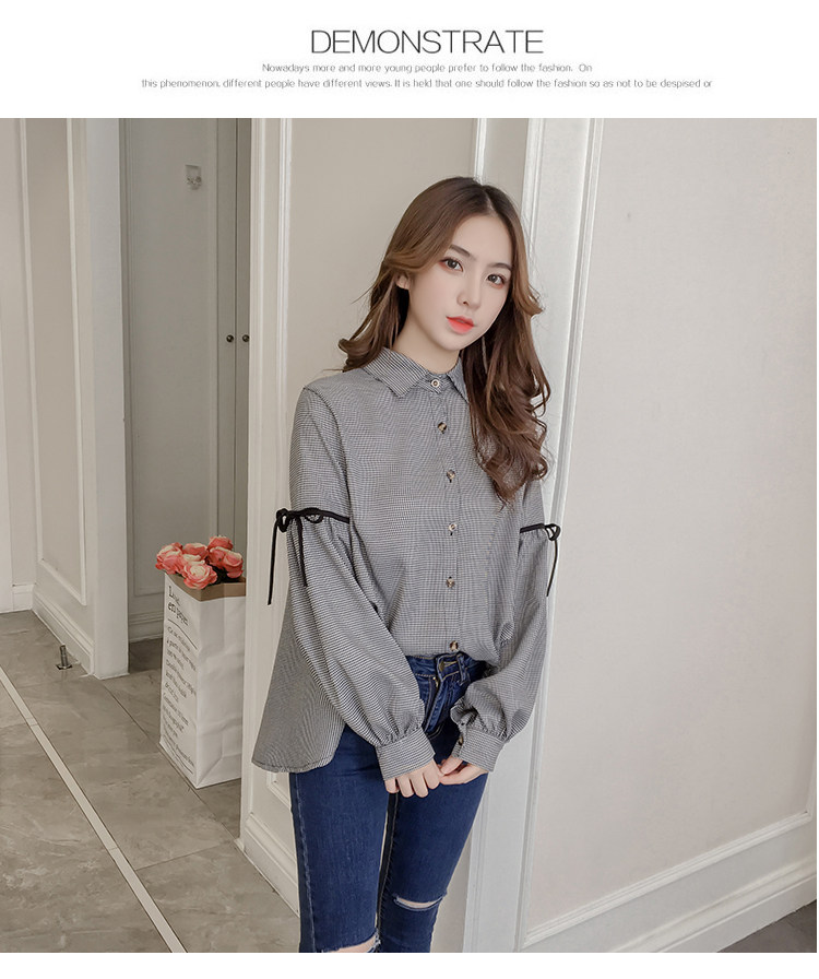 Harajuku, клетчатая женская блузка с длинным рукавом, отложным воротником, бантом, кавайная женская рубашка спереди, короткая сзади, Длинные Нерегулярные блузки E540 <