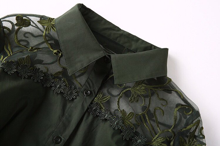 Женское Новое сексуальное Сетчатое платье-рубашка с вышивкой, короткое Повседневное платье с отложным воротником и поясом ArmyGreen A Line Vestidos E385 <