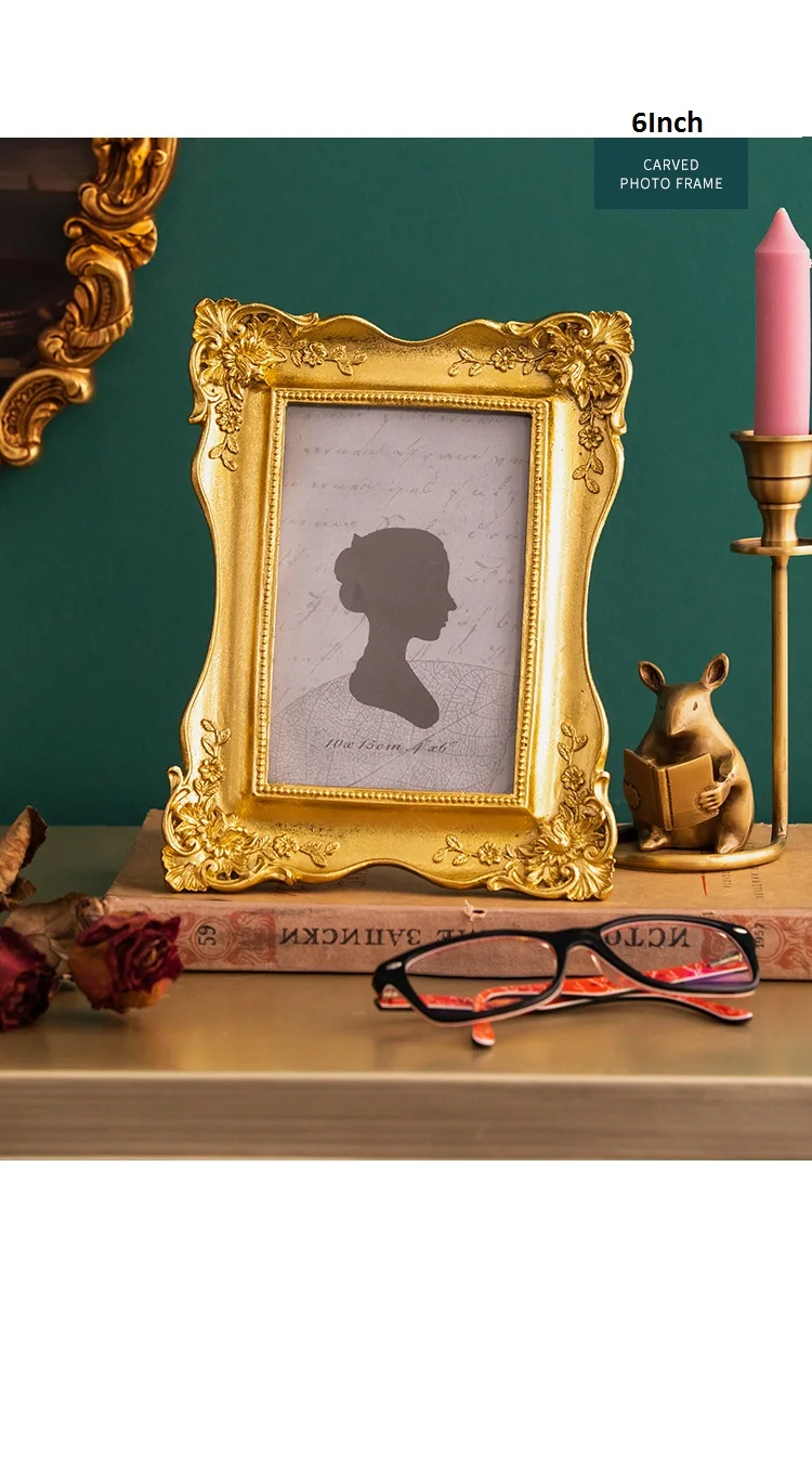 Light Luxury Style Elegant Palace Princess Style Retro Gold Carved Six-Inch European Style Photo Frame