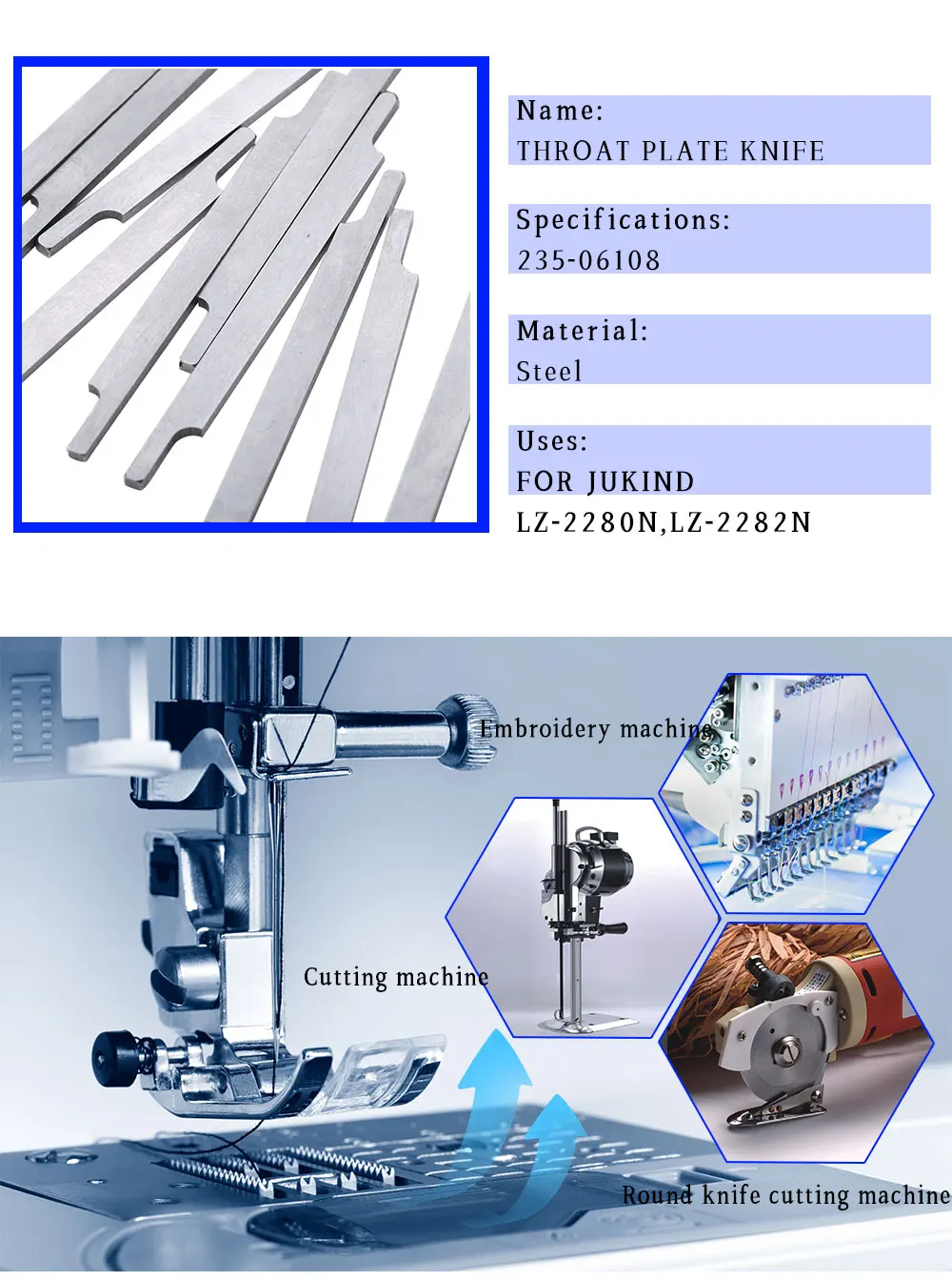Часть #:235-06108Этот список предназначен для 1 шт ~ 10 шт ножа для горла #235-06108 подходит для JUKIND LZ-2280N,LZ-2282N
