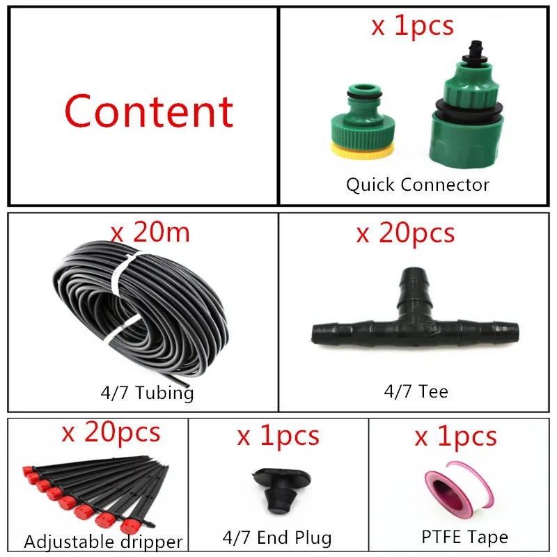 20 м красными регулируемыми 8 отверстий капельница на кола для завод автоматический с самостоятельным поливом микроспрей капельного полива и орошения комплекты фитингов E210D