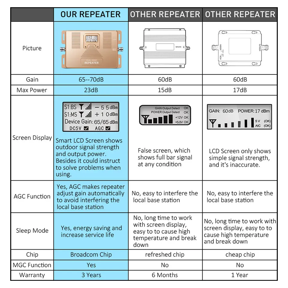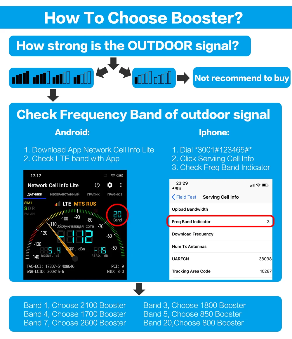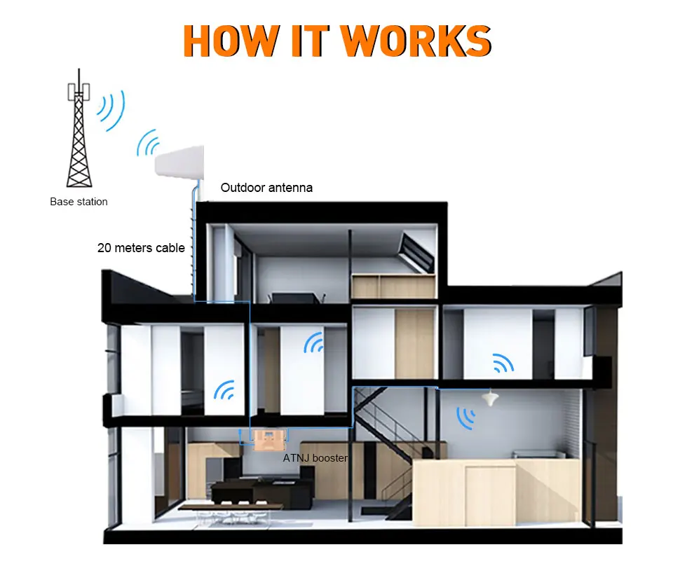 Примечание: Пожалуйста, убедитесь, что место, где вы собираетесь установить, имеет DCS 1800MHz ,LTE 800MHz сигнал. И убедитесь, что вы можете получить как минимум 2 бар 2G и 4G сигнал на открытом воздухе перед покупкой, в противном случае этот продукт не может вам помочь. Для улучшения сигнала в помещении необходим хороший внешний сигнал.