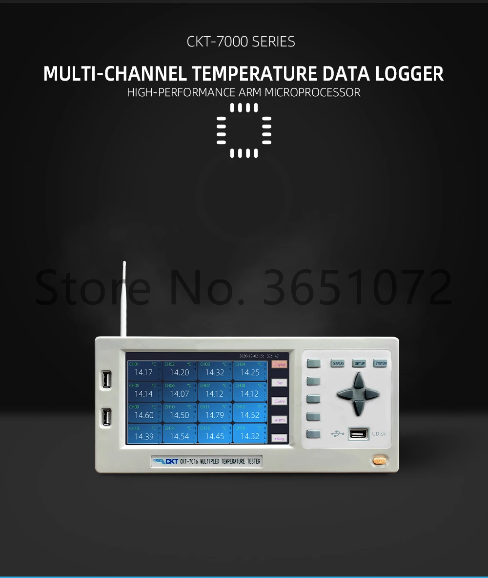 Регистратор данных о температуре CKT-7000 серии использует высокопроизводительный микропроцессор ARM, это сенсорный экран 7 дюймов, он может самостоятельно и смешивать собирать данные о многоканальной температуре, напряжении, сопротивлении и влажности. Высокий/Низкий звуковой сигнал и передача данных. Может быть расширен до 80 каналов и совместим с различными датчиками температуры. С 10ms быстрым ответом и стабильными данными. Поддержка RS-232 и USB связи, реализация сбора данных, анализа и печати через стандартное компьютерное программное обеспечение. Поддержка сетевой связи и хранения USB дисков и хранение данных выборки в реальном времени. Пользователи могут самостоятельно регулировать данные для каждого канала.
