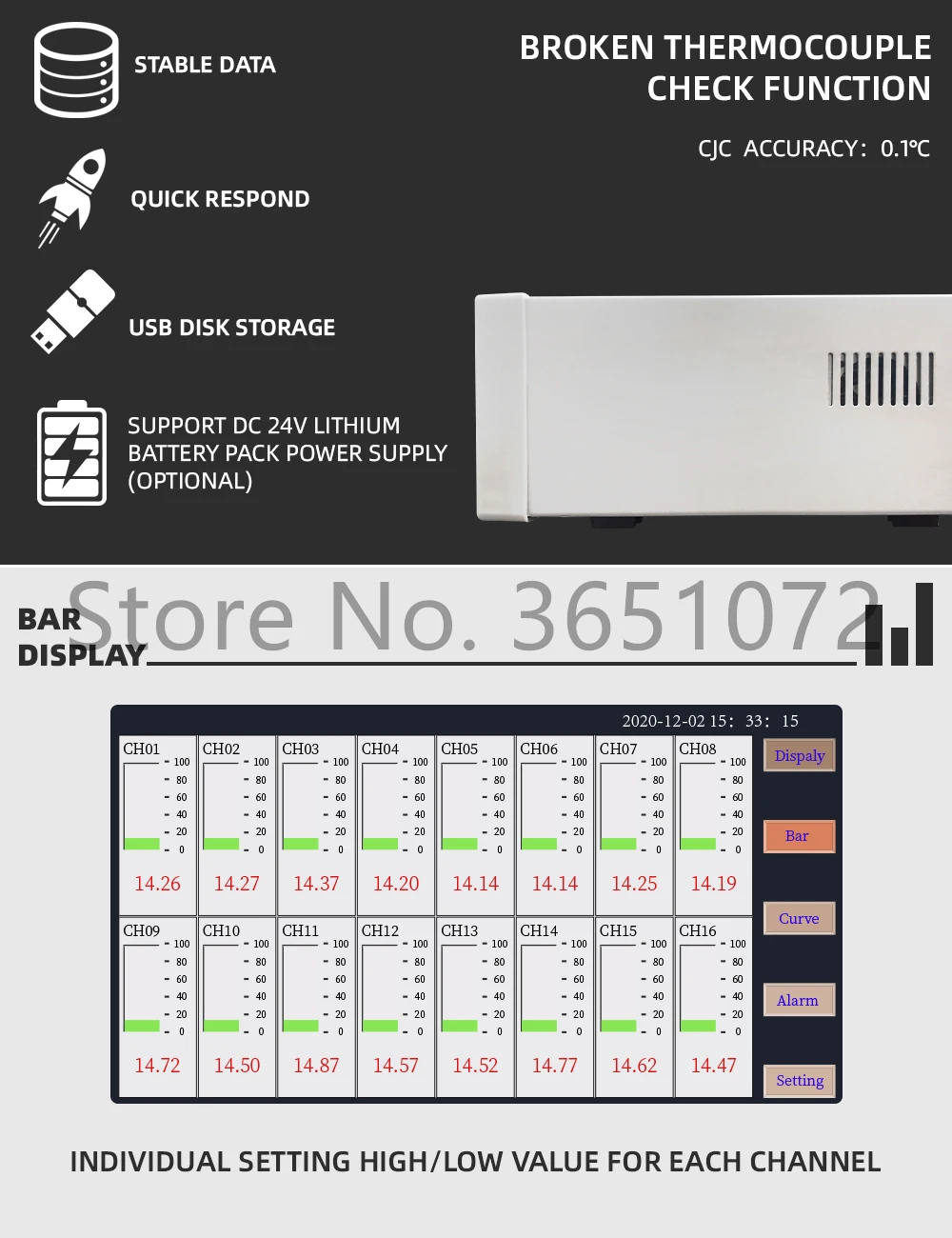 Диапазон измерения | -270°C ~ 1768°C(Разрешение 0,01℃, Варьируется в зависимости от выпускного) Напряжение:0.0005мв ~ 100,000 сопротивление:0,001W~ 200,00W Влажность:0% RH-100 % RH | |||