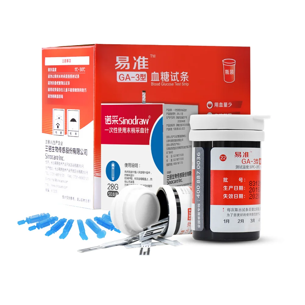 Sannuo 50/100 шт тест-полоски с ланцетами иглы без глюкометров для Yizhun GA-3 устройство для забора крови медицинские инструменты для диабета
