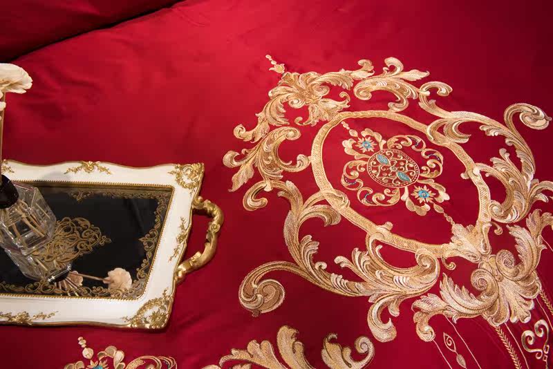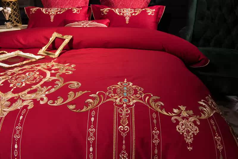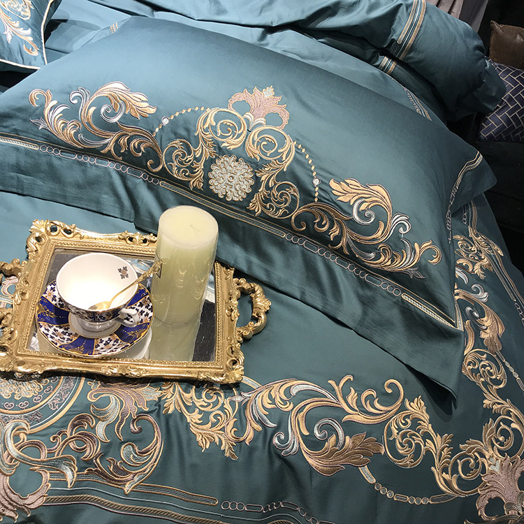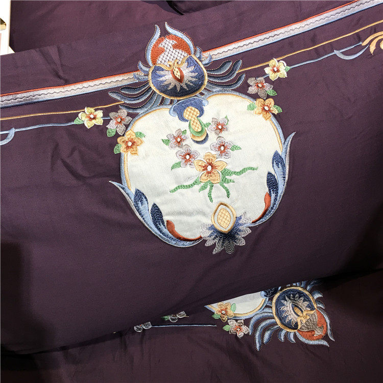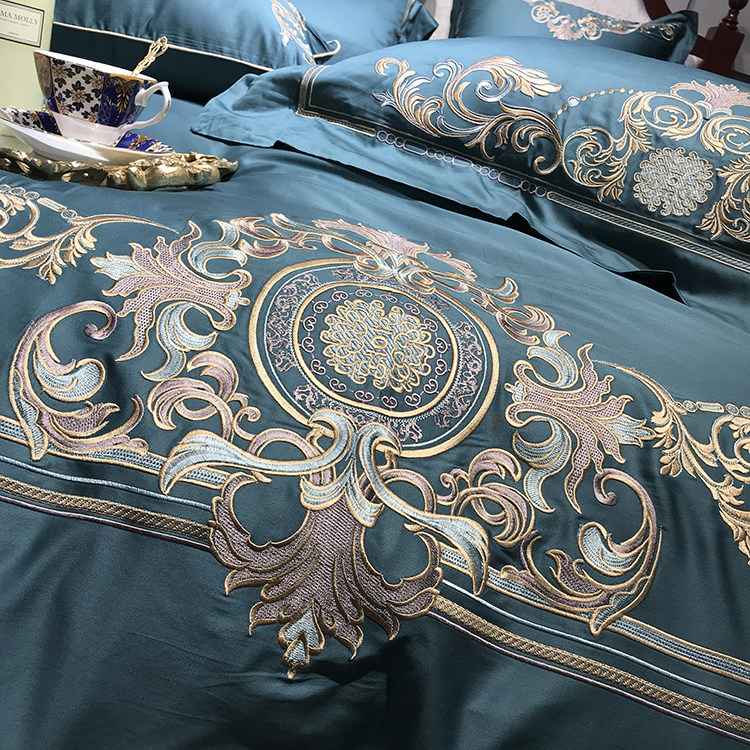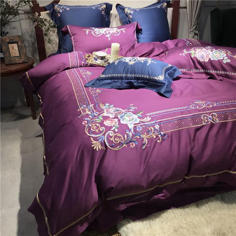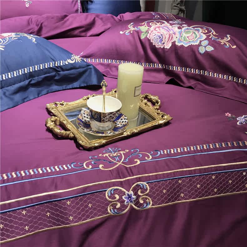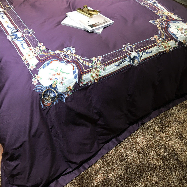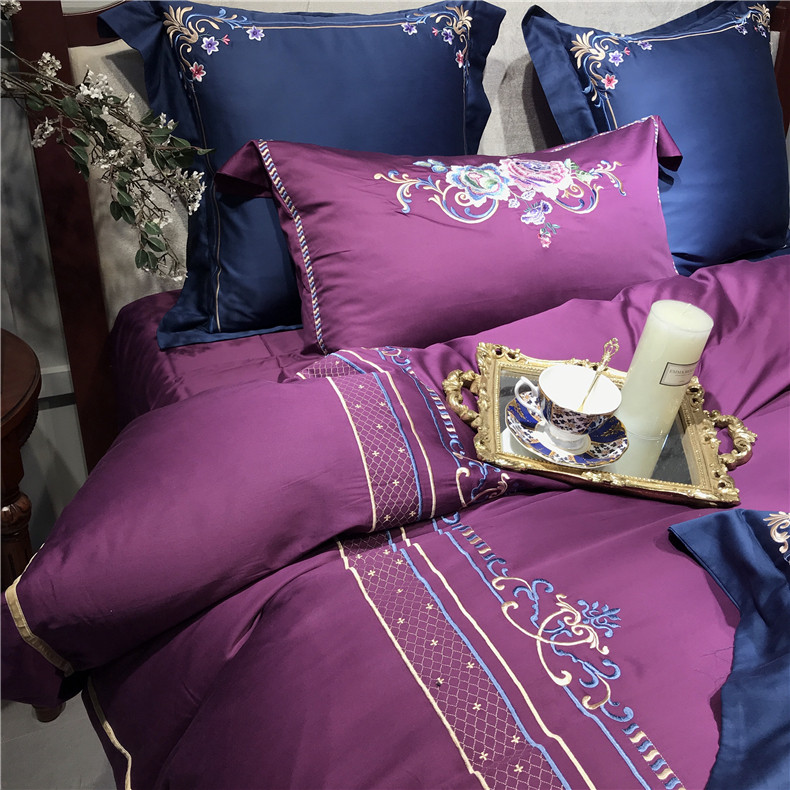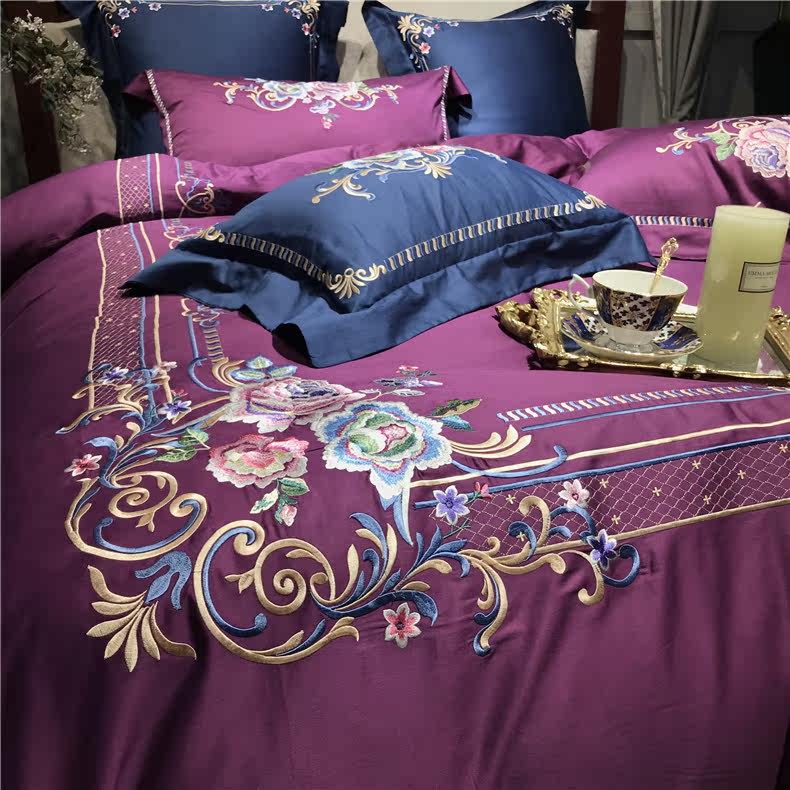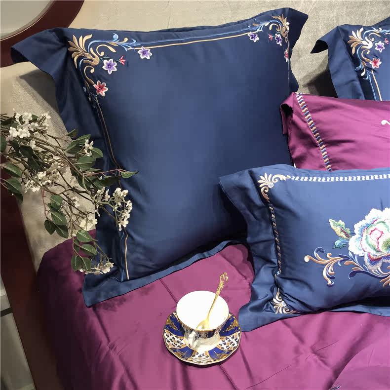 Color 1Luxury 100S Egyptian cotton fabric, high count and density, tribute silk process, soft and silky feeling. pure environmental reactive printing and high precision embroidery . bright colors, high color fastness, protect health.
