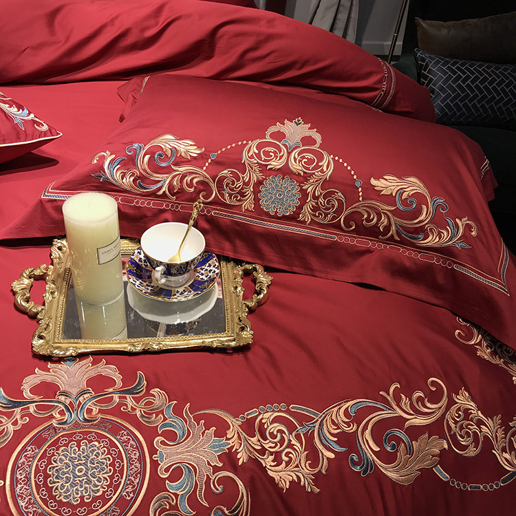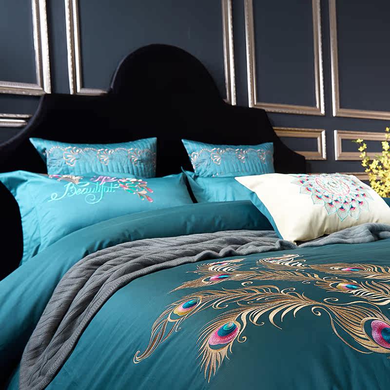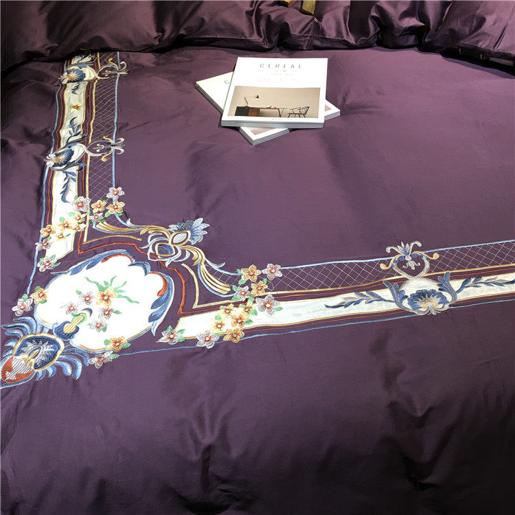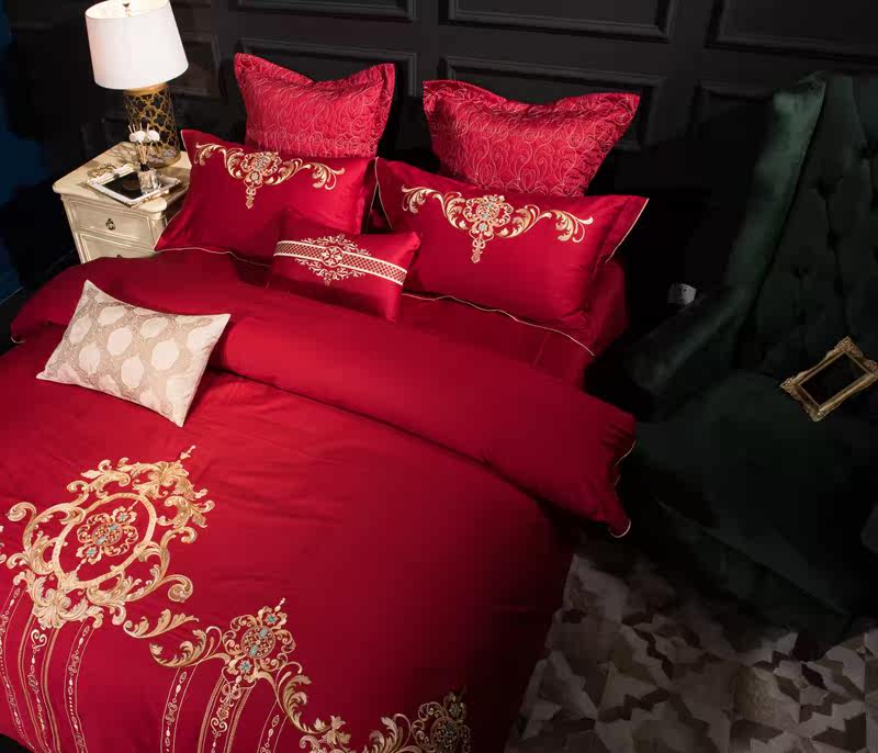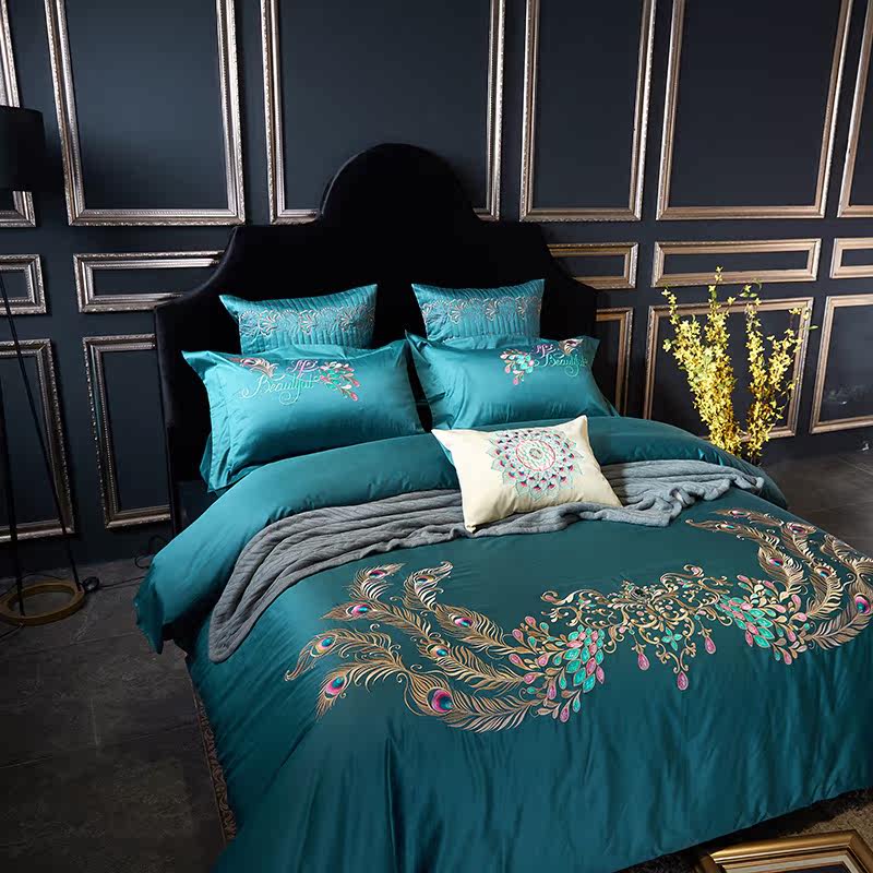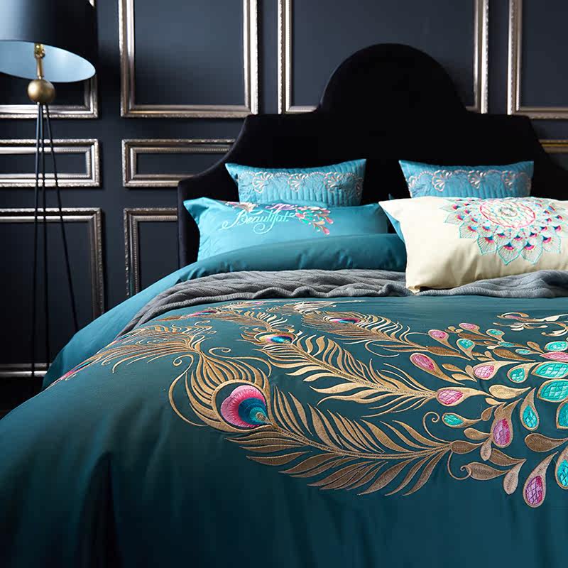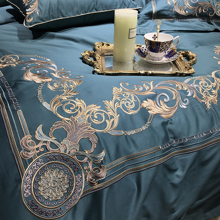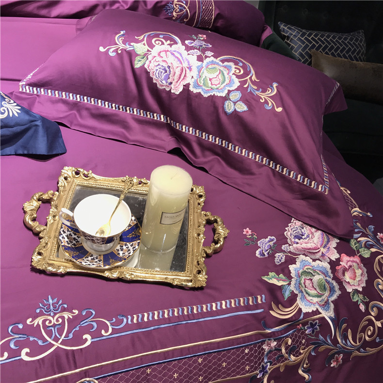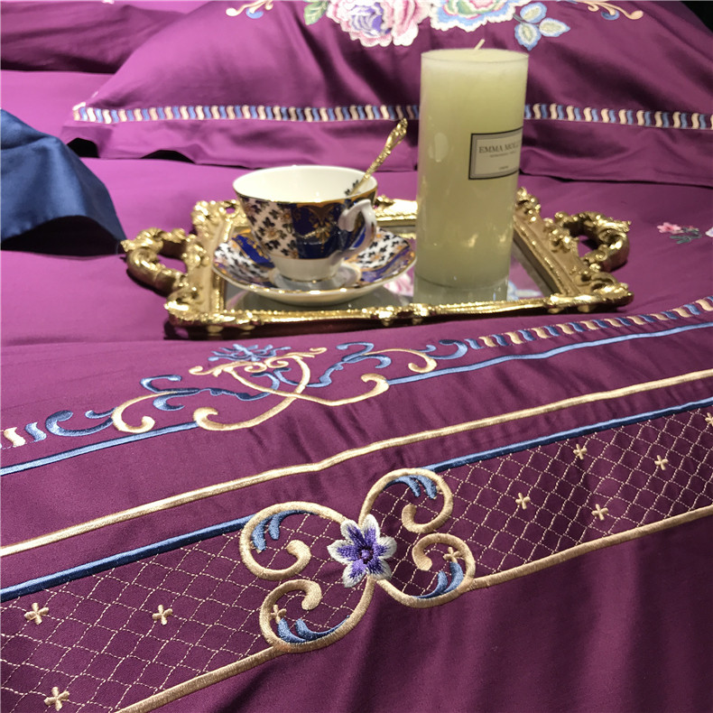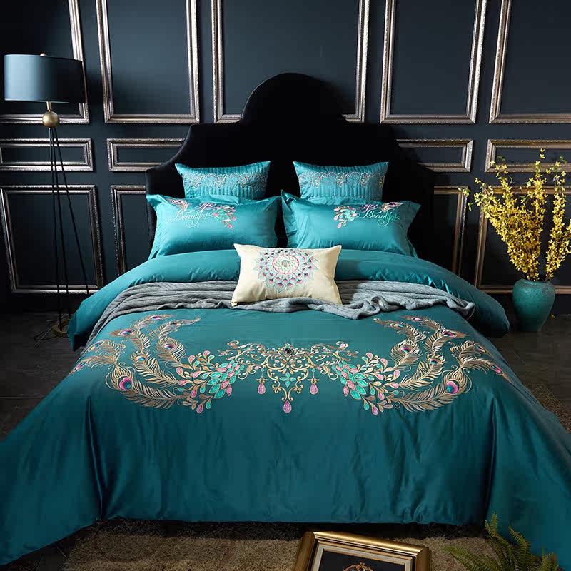 Color 1Luxury 100S Egyptian cotton fabric, high count and density, tribute silk process, soft and silky feeling. pure environmental reactive printing and high precision embroidery . bright colors, high color fastness, protect health.