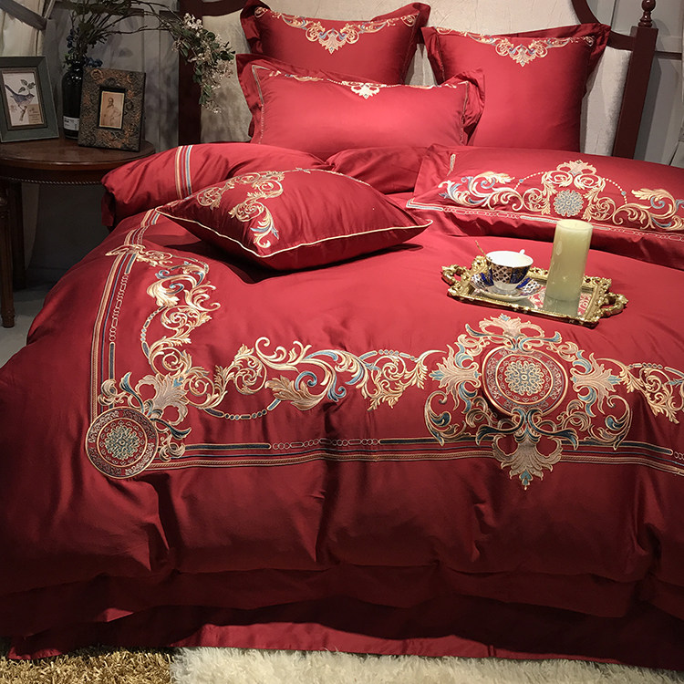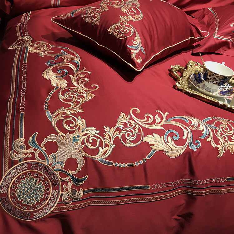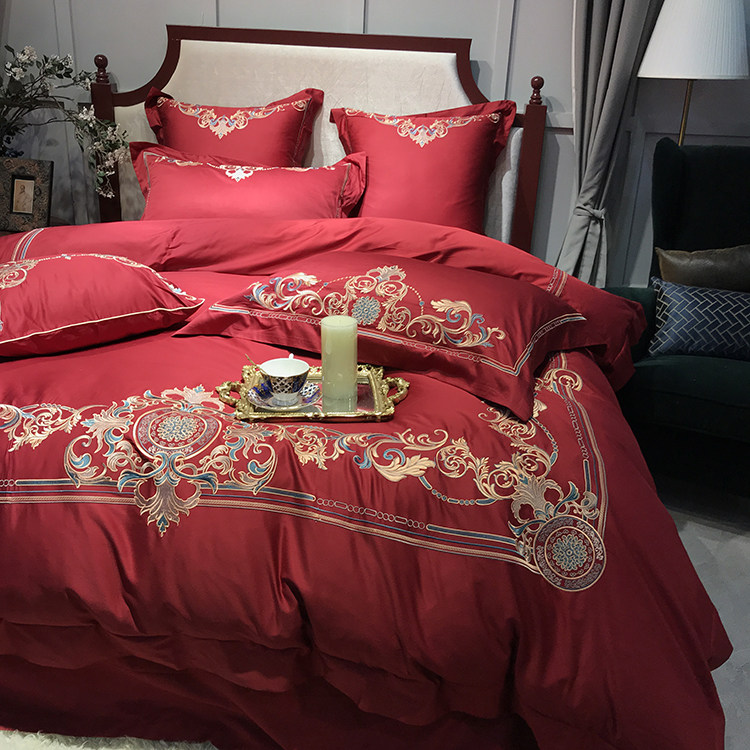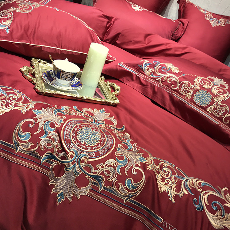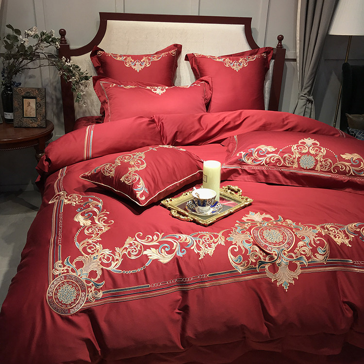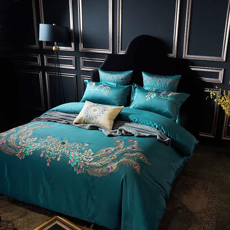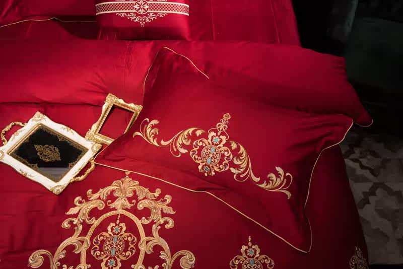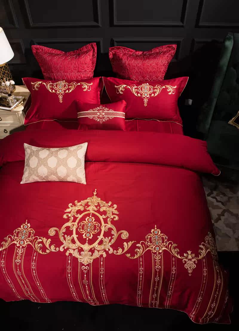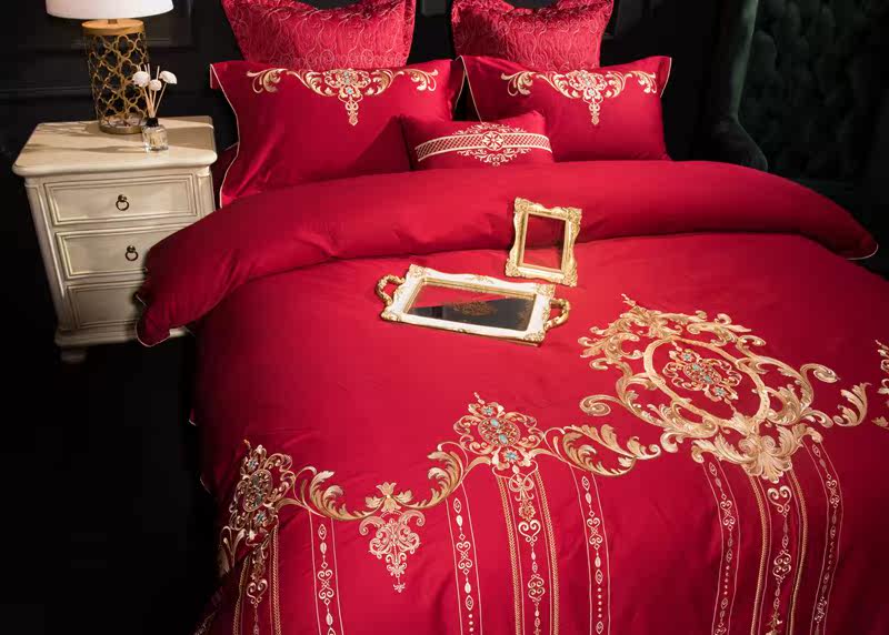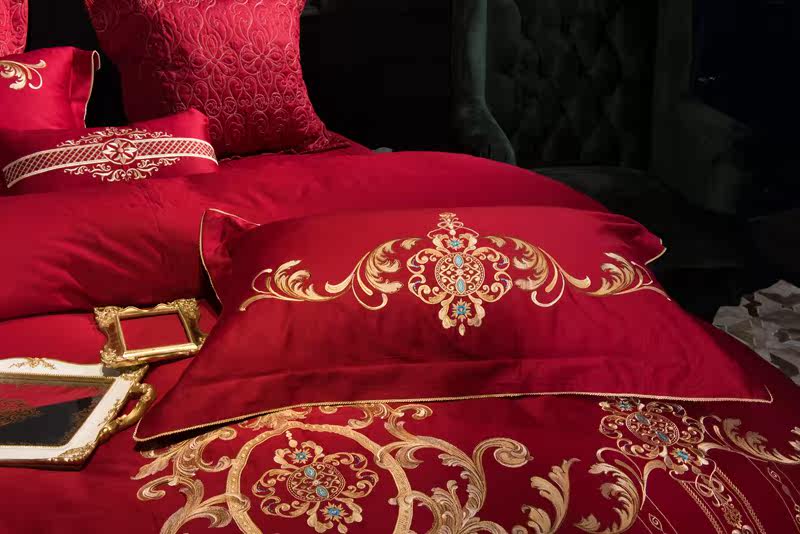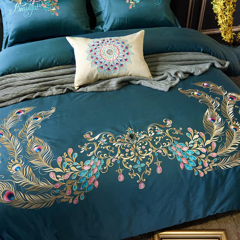 Color 1Luxury 100S Egyptian cotton fabric, high count and density, tribute silk process, soft and silky feeling. pure environmental reactive printing and high precision embroidery . bright colors, high color fastness, protect health.