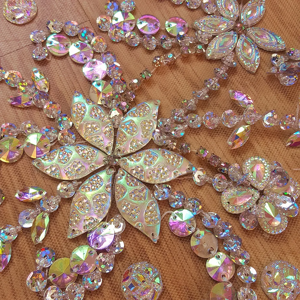 Описание: они gogeous, стразы и камни ручной работы расшитые бисером на ткани, вы можете приклеить или вручную сшить изделие на одежду/аппараты/платья/Вечерние платья/украшения/сумки/украшение дома, И т. д. Они красивые.