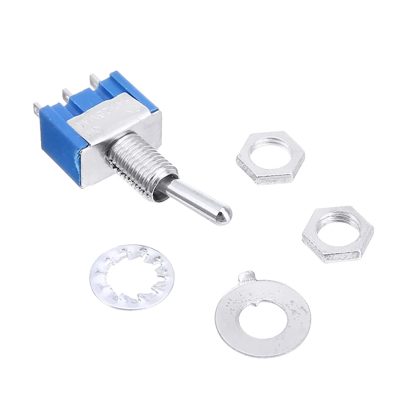 Каждый переключатель поставляется с двумя шестигранными гайками, плоской и фиксирующей шайбой.