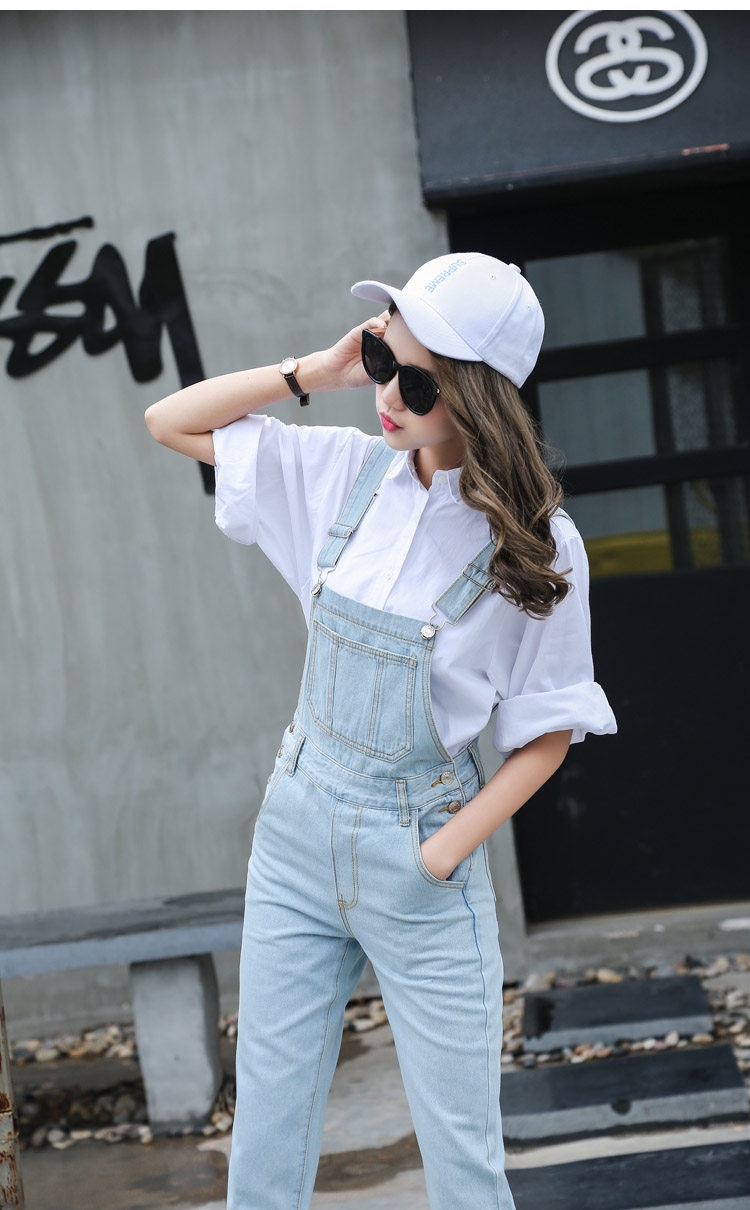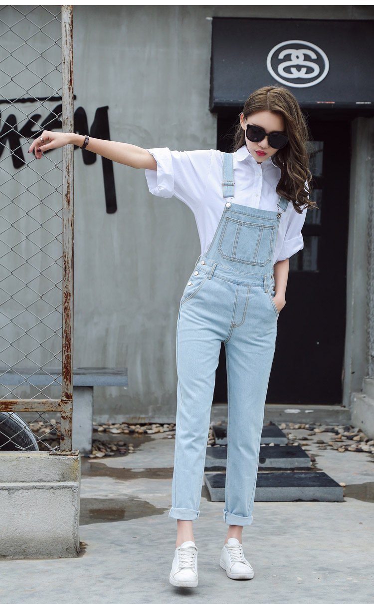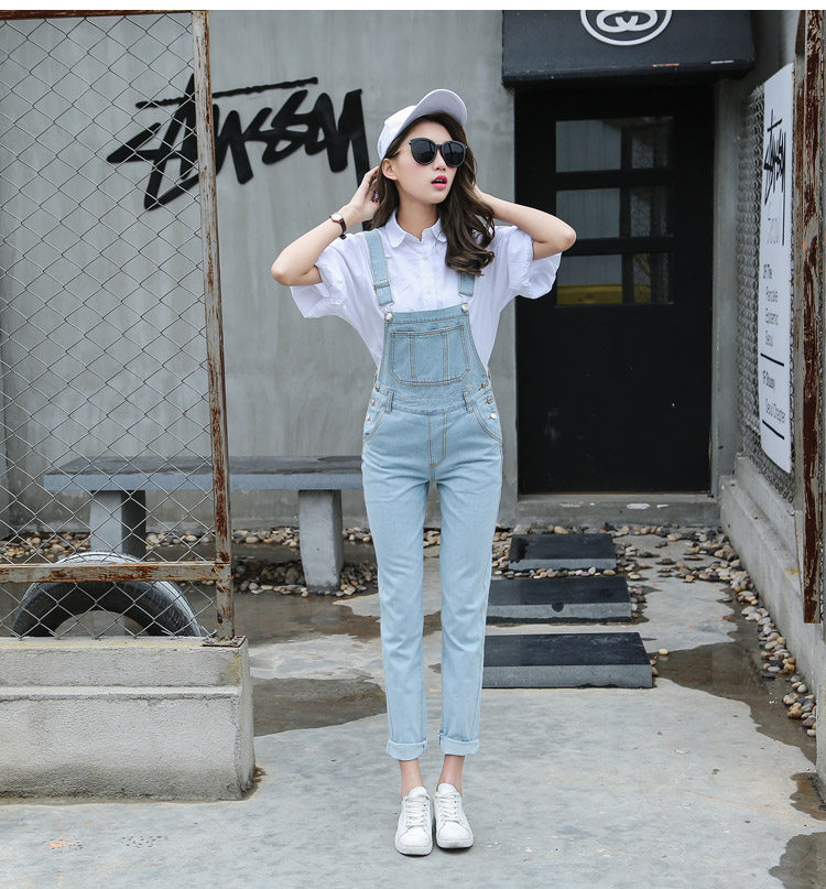 S-L джинсы, женский комбинезон, джинсовый комбинезон, комбинезоны, корейский стиль, длинные брюки, базовые светло-голубые джинсовые штаны, Комбинезоны для женщин