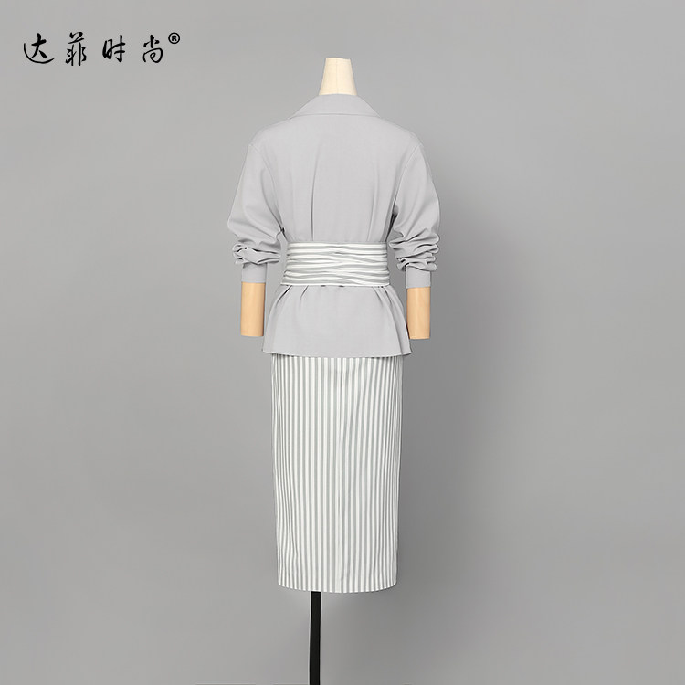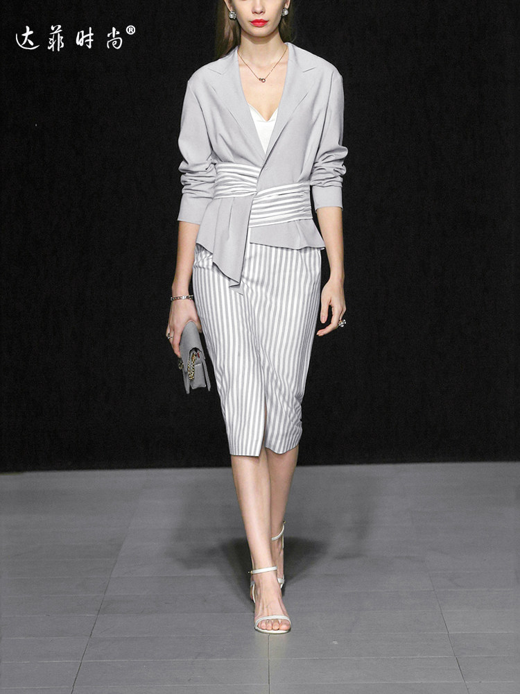 Наименование товара:Женский Асимметричный топ в европейском стиле с разрезом и юбка в полоску, сезон весна 2018