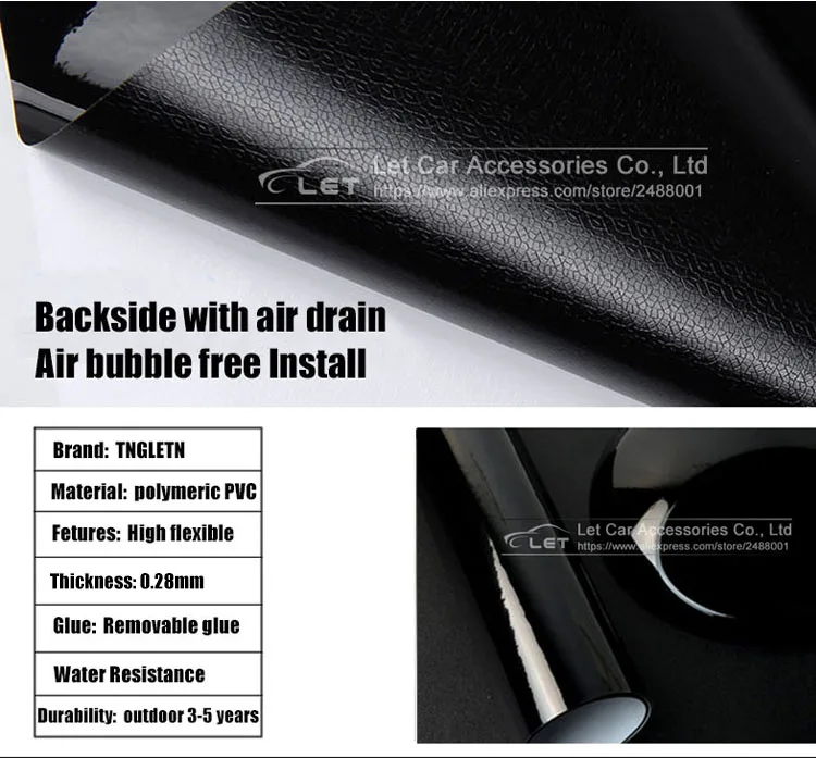 Высококачественная Черная яркая глянцевая виниловая Автомобильная оберточная наклейка, черная глянцевая пленка, розничная торговля для капота на крыше мотоцикла скутера