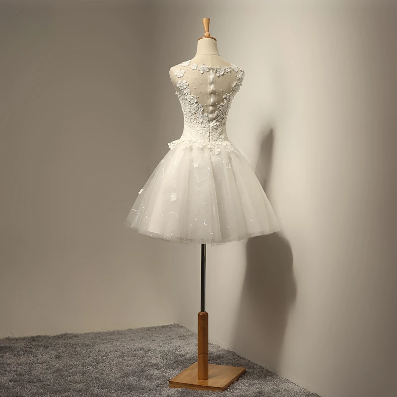Vestido de festa, новое белое свадебное платье, короткое Кружевное платье без рукавов с бисером, Элегантное свадебное платье с открытой спиной, Vestidos de Boda