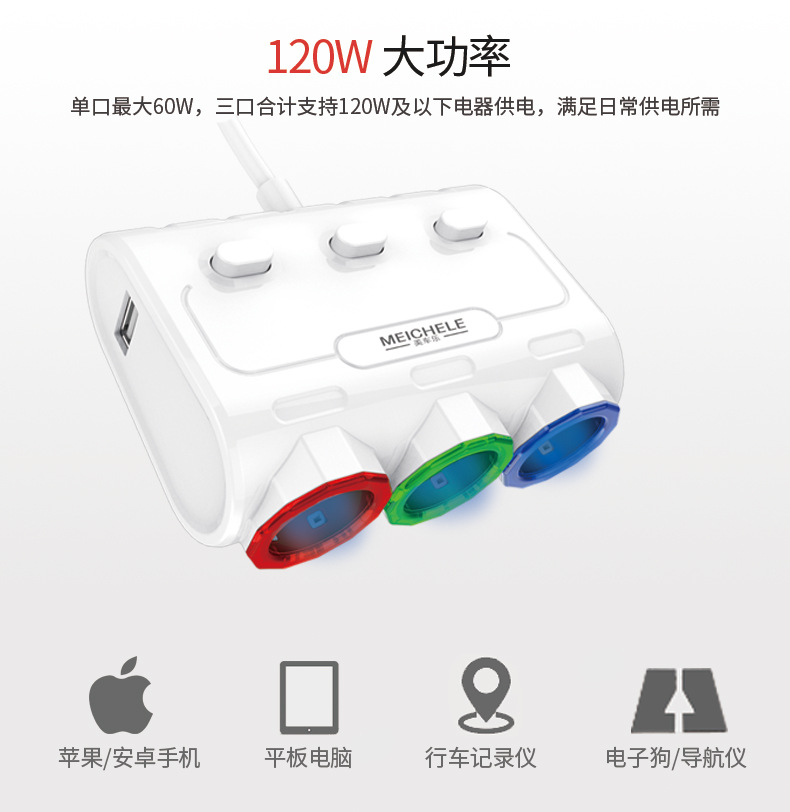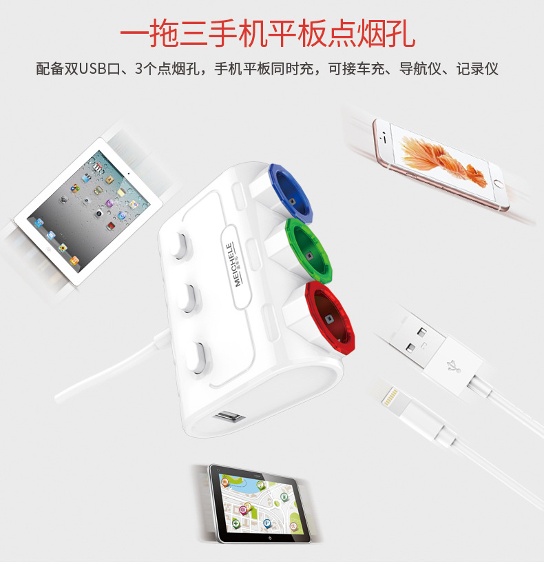 Прикуриватель сочетает в себе 3 гнезда прикуривателя с 2 usb-портом для зарядки, чтобы преобразовать прикуриватель в многофункциональный адаптер питания для одновременной зарядки нескольких устройств. Защита от перенапряжения и перегрузки по току, чтобы избежать риска для заряженных устройств. Легкий переключатель включения/выключения с светодиодный-индикатором. Три гнезда для прикуривателя 12 В/24 В (розетки постоянного тока) обеспечивают полную мощность до 120 Вт, что достаточно для одновременного использования различных портативных приборов в вашем автомобиле. 2-портовый usb-порт для зарядки s с общим выходом 3,1 а позволяет быстро заряжать 2 таблетки или телефоны одновременно с их полной скоростью. Особенности: Умный IC для автоматического обнаружения напряжения 2 порта USB для одновременной зарядки Зарядное устройство с 3 usb-портами для полнофункциональная камера автомобильной розетки 3.1A Ампер высокой емкости для быстрой зарядки Обработка поверхности пианино Защита от перенапряжения и перегрузки по току Характеристики: Вход: 12-24 В постоянного тока Выход USB: 5 В, 3,1 А (всего) Выход USB: 2.1A, 1A Выход розетки: 12 ~ 24 В постоянного тока