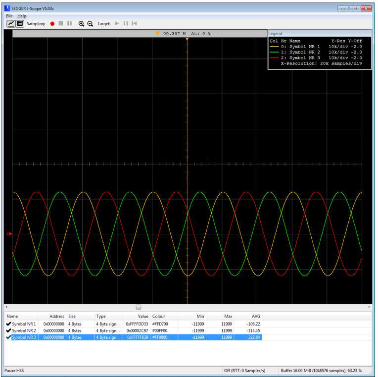 Используйте инструмент SEGGER J-Scope для просмотра переменных сигналов в реальном времени