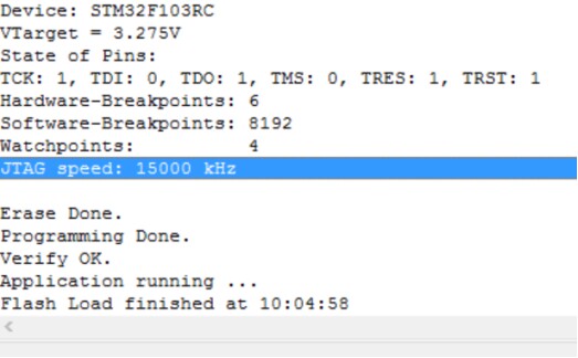 Выходная информация об отладке (в качестве примера берем STM32F103RC)