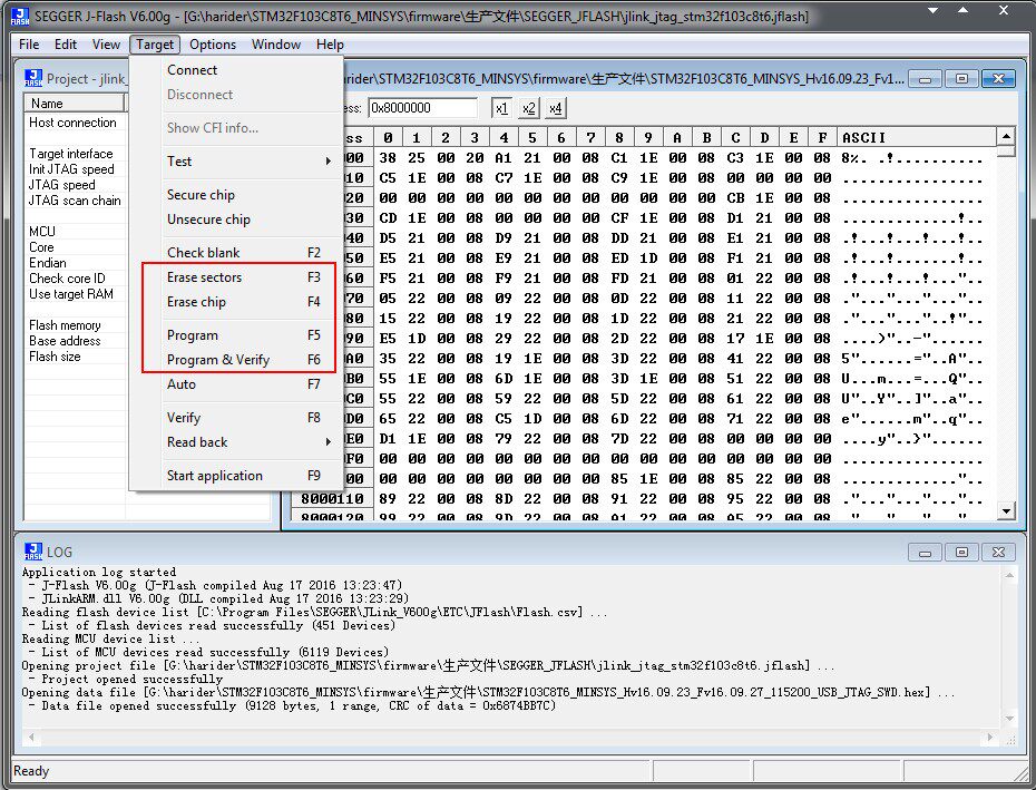 Запись, чтение, стирание с помощью инструмента программирования SEGGER