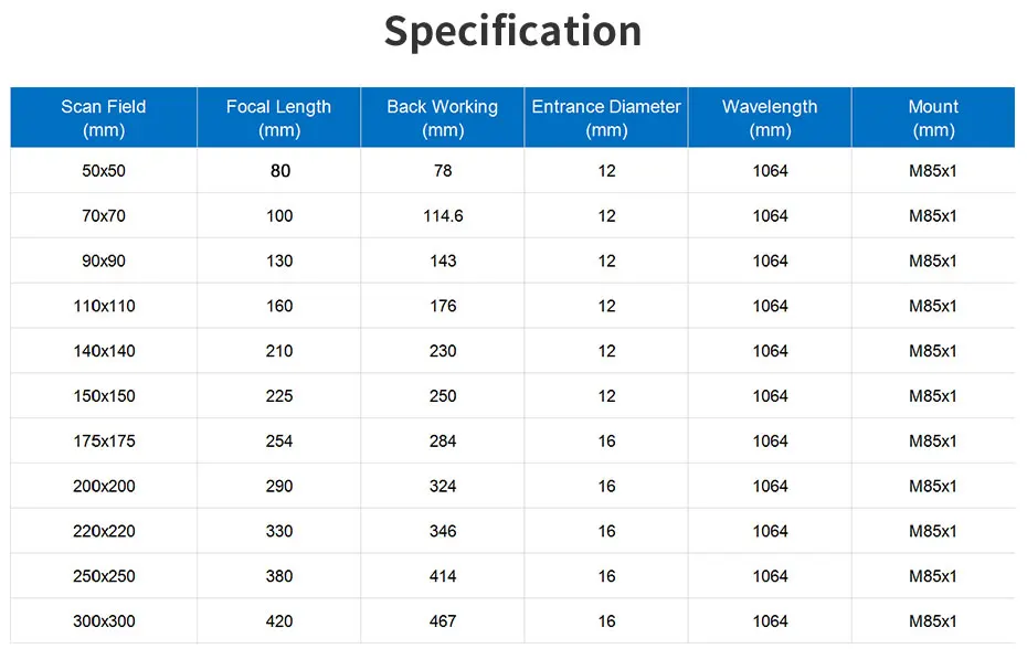 В типичной конфигурации объектива сканирования объектив F-theta используется с on или two axis galvo зеркала, которые позволяют быстро позиционировать и точность фокусировки лазерного луча.