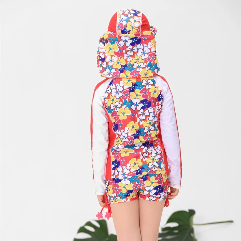 UPF50 + купальный костюм для девочек, Детский комплект из двух предметов с принтом в виде цветов, солнцезащитный костюм с длинными рукавами для маленьких девочек, пляжная одежда