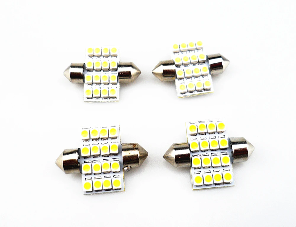 Характеристики: Цвет: белый Напряжение: 12 В постоянного тока Ватт: 1 Вт Количество СВЕТОДИОДНЫЙ: 16-1210 SMD на лампу Размер: 31 мм Пожалуйста, переверните лампу горизонтально, если светильник не соответствует полярности (+) и (-). Посылка включает в себя: 4 шт. x 31 мм 16 SMD СВЕТОДИОДНЫЙ купольный светильник