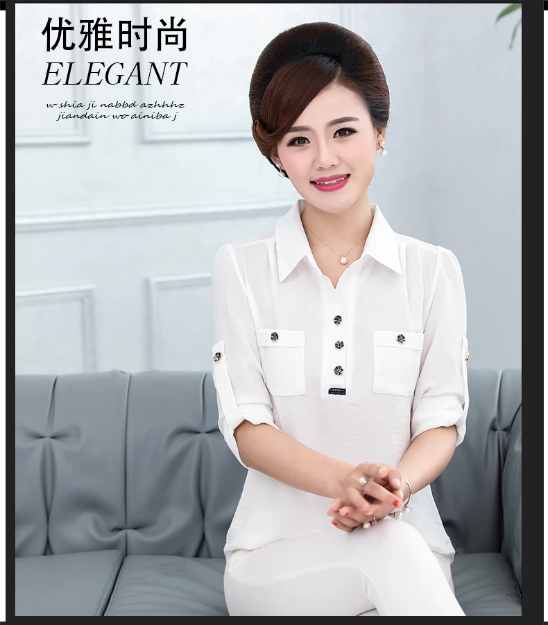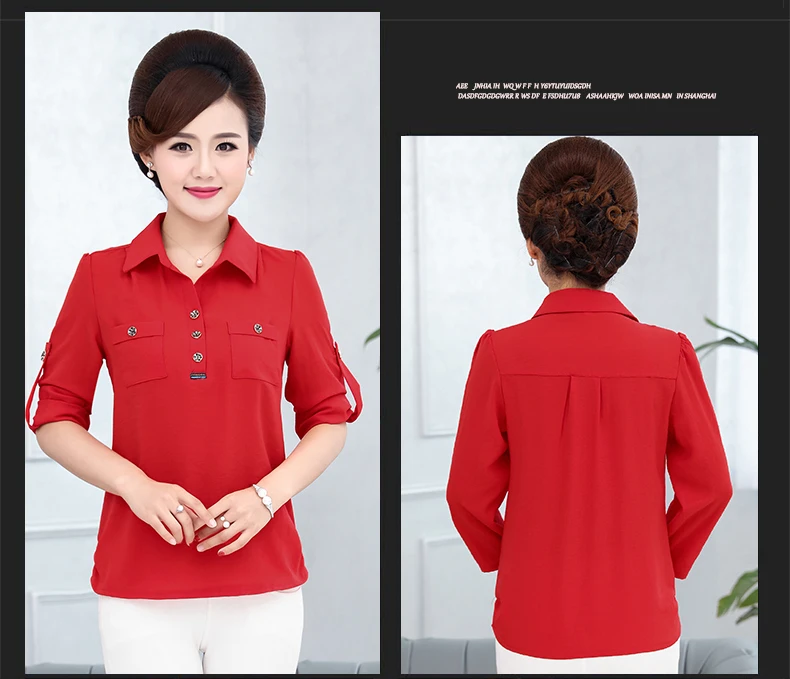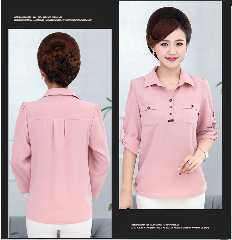 Новая мода для женщин среднего возраста Сексуальная Блузка с отложным воротником рукав 3/4 размера плюс 5XL Однотонная рубашка Элегантные повседневные топы