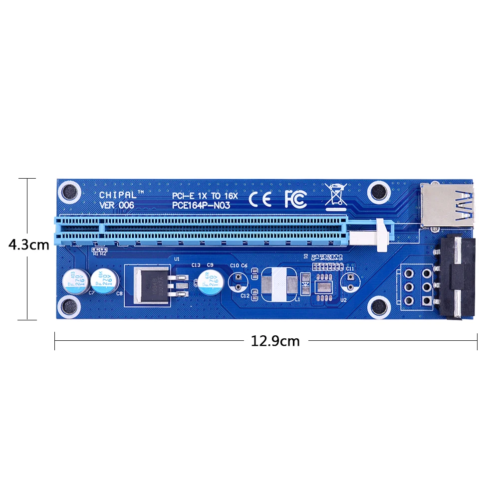 Карта PCI-E 16X-1 шт.1 xPCI-E 1X картаКабель USB 3,0-1 шт.1 х Кабель питания Примечание:Для последней расширенной версии видеокарты, riser card не может работать очень хорошо. Например, GTX1070 / GTX1080.