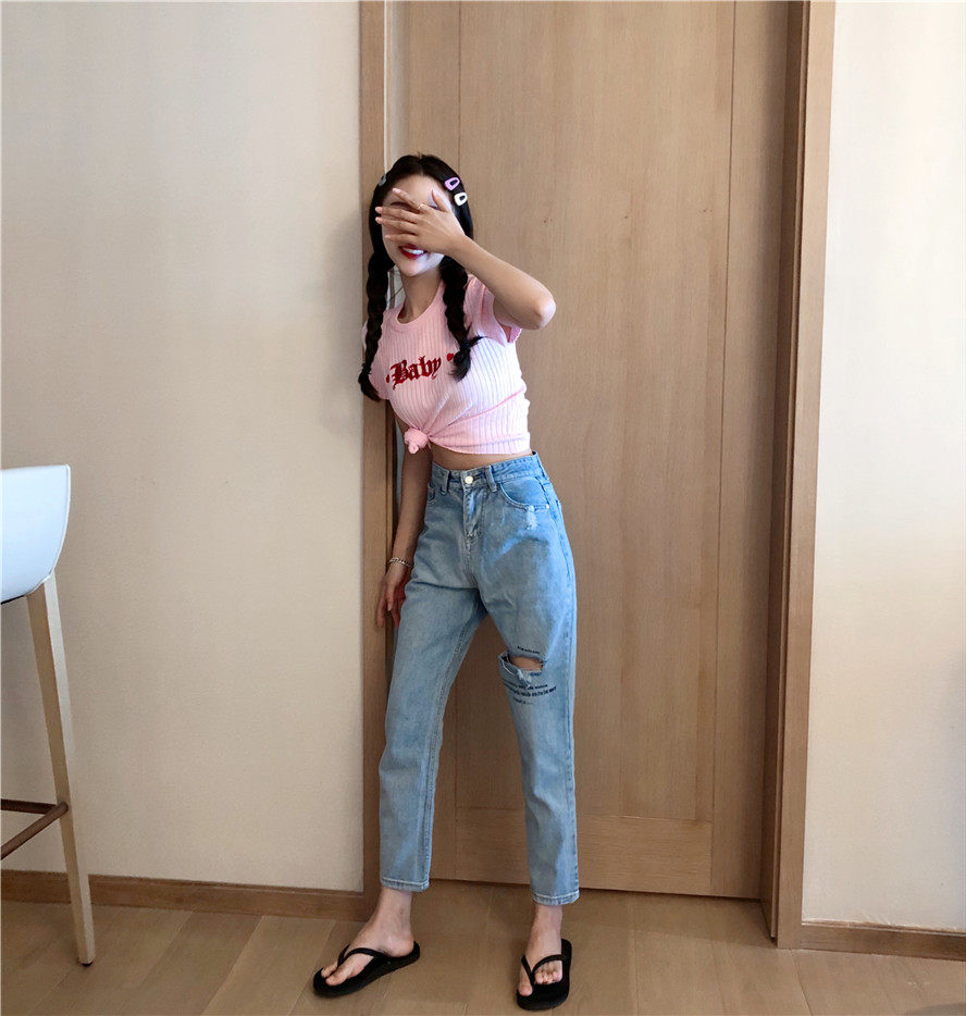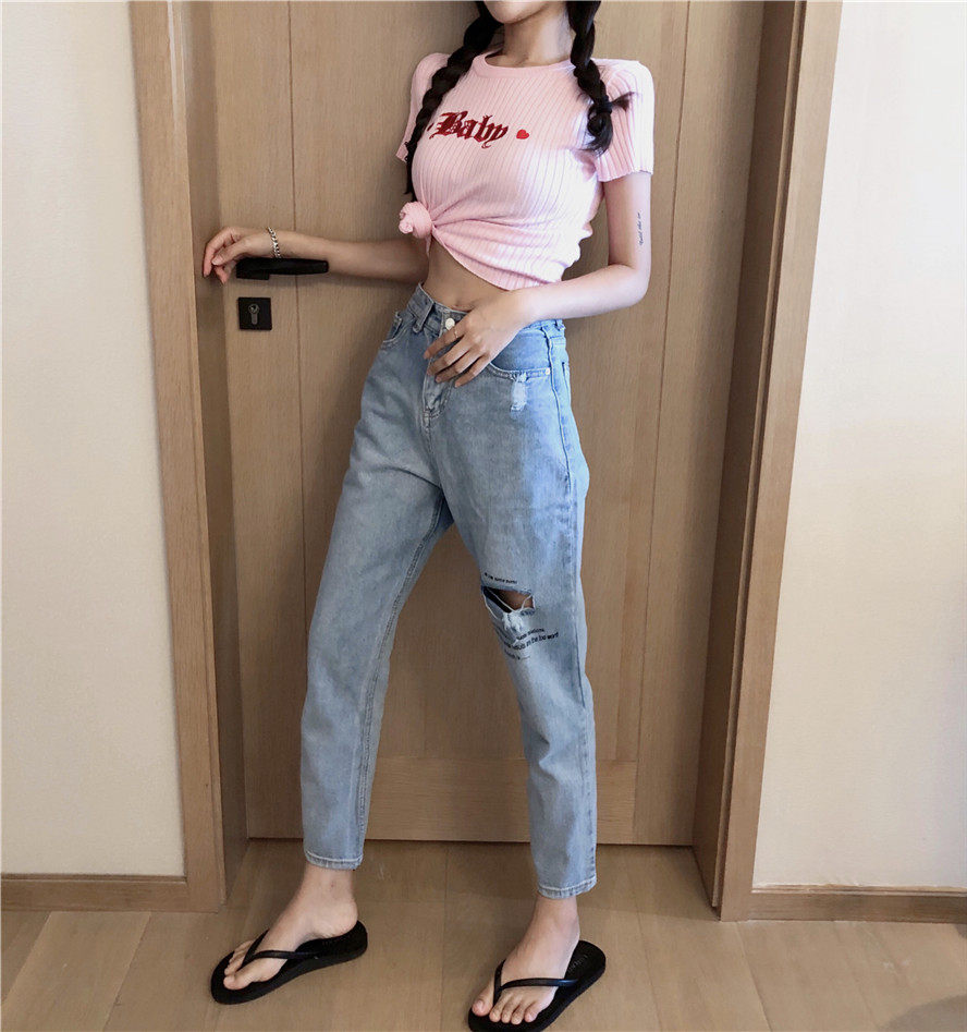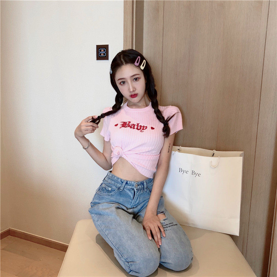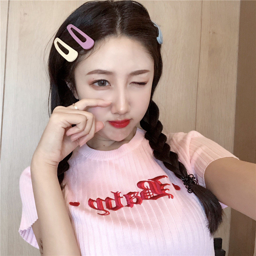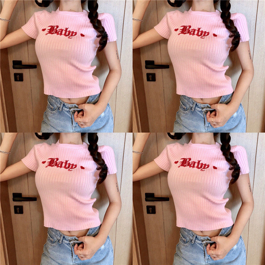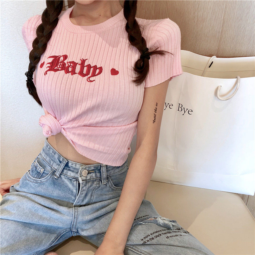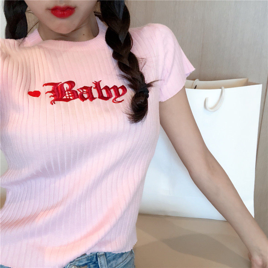 Трикотажные короткие футболки для женщин, 2018, тянущиеся тонкие цветные майки с вышивкой «baby love», летние сексуальные майки, топы для женщин