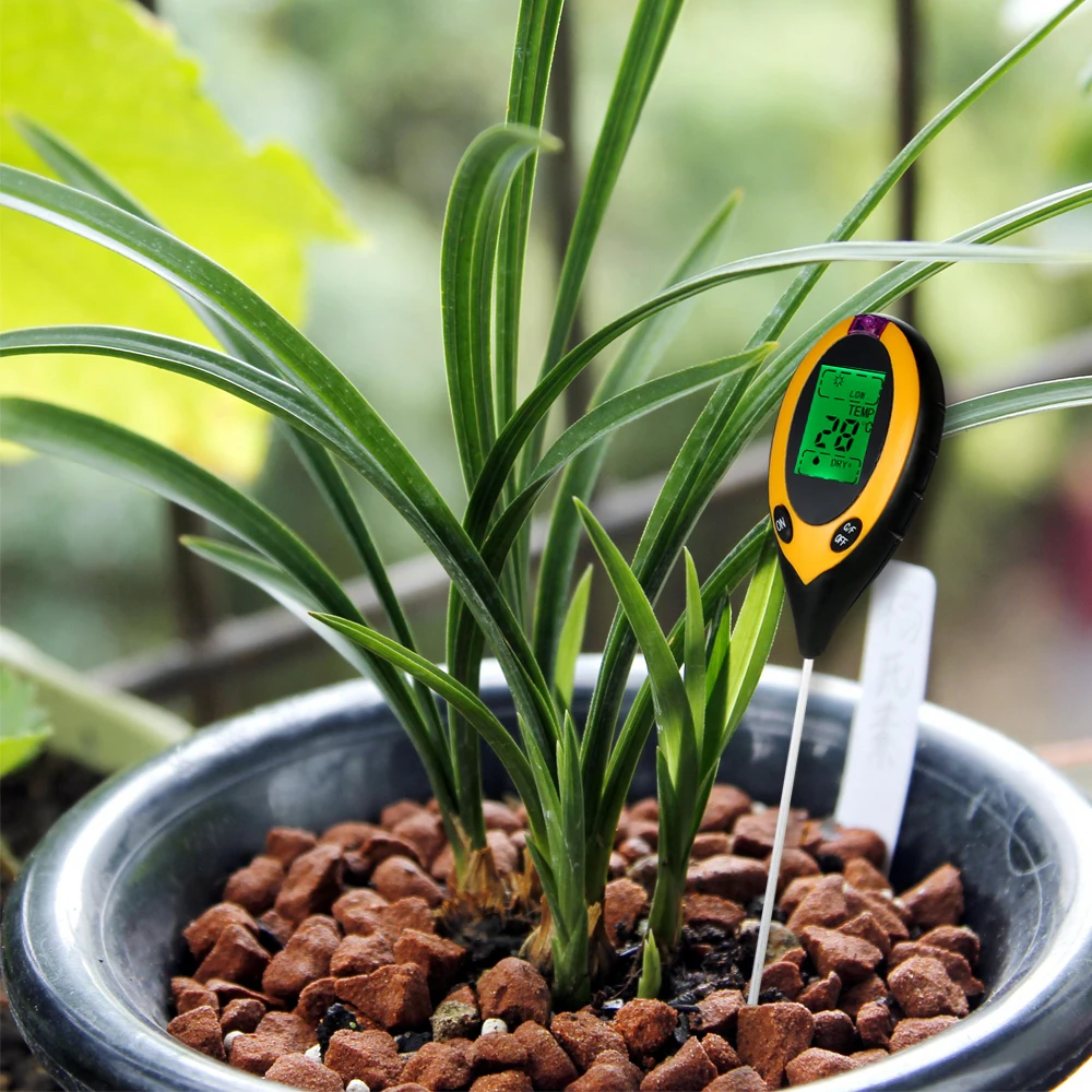 The 4-in-1 soil tester is professional in testing soil moisture, PH value, temperature and environment sunlight intensity.