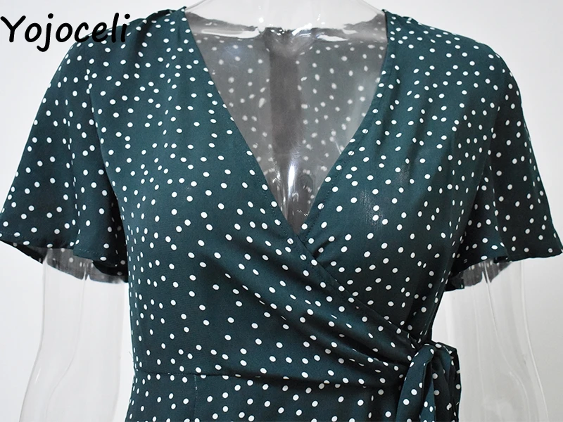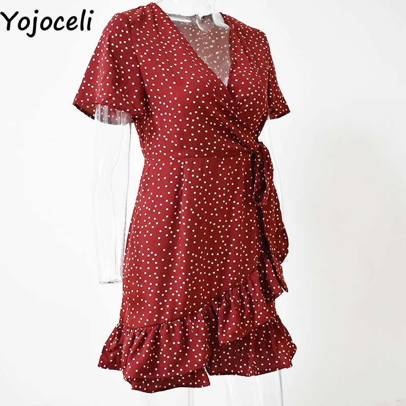 Yojoceli элегантное короткое плиссированное платье в горошек, женское летнее Элегантное повседневное пляжное платье, женское Повседневное платье с поясом и бантом, vestidos
