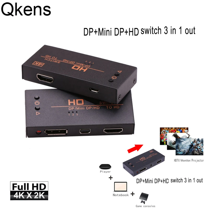 Интерфейс Mini DP, переключение на порт, совместимый с HDMI (4K * 2K), выход при подключении через этот коммутатор. Это решает проблему