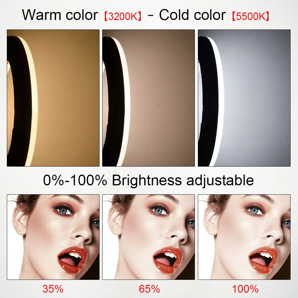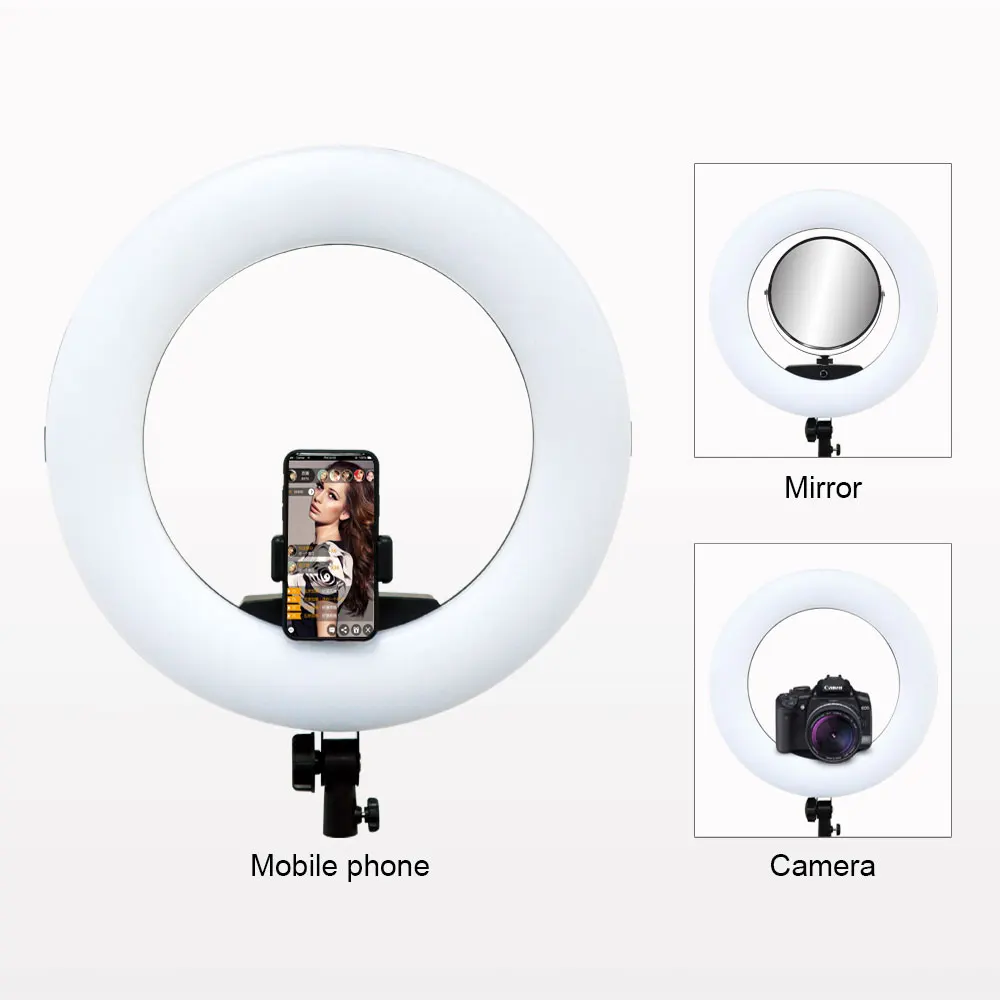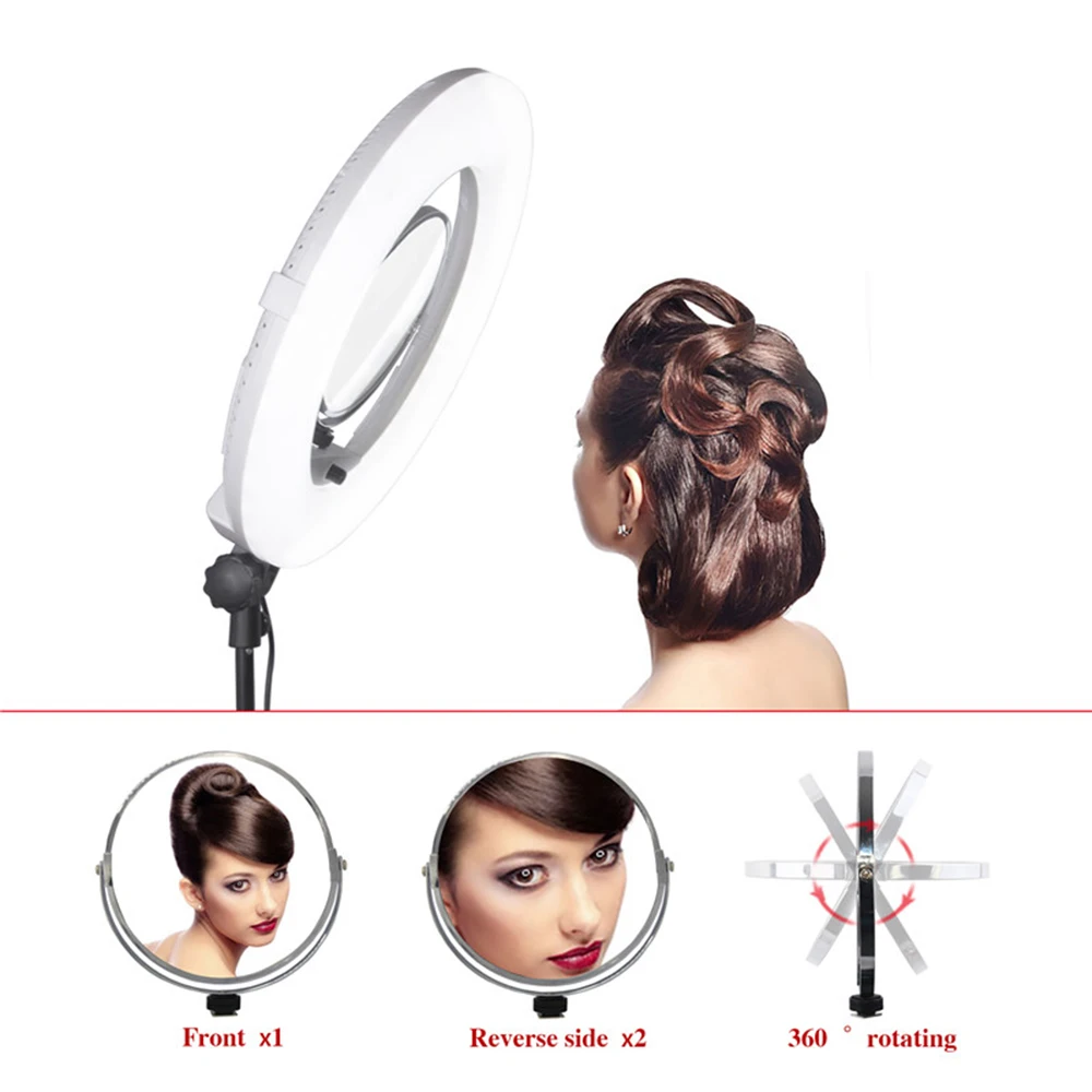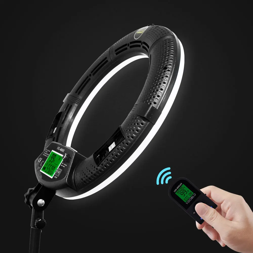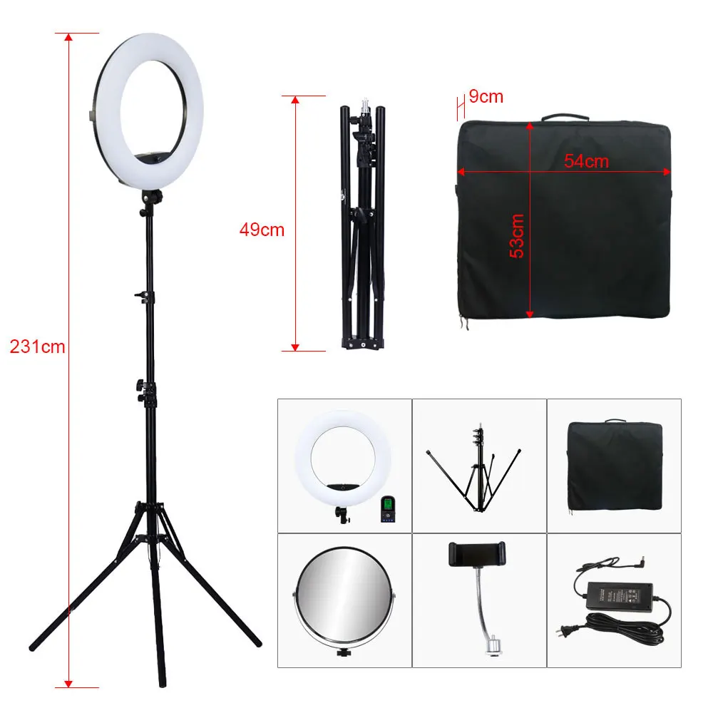 Характеристики: Модель: FE-480 Цветовая температура: 3200K-5500K ± 200K (двухцветная плавная регулировка) Новый дизайн: ЖК-экран, пульт дистанционного управления, Встроенный приемник Мощность: 96 Вт (480 светодиодов) Напряжение: 110-220 В переменного тока/15 В постоянного тока/два аккумулятора SONY 750/970 Световой поток: 3300 Lux/0,5 m, 1000 Lux/1 м Индекс цветопередачи: 95RA Светильник угол: 60 градусов Эффективное расстояние: 30 метров Расстояние управления: 50-80 метров Размер: внешний диаметр: 18 дюймов/45 см Посылка включает в себя: 1x светодиодный светильник FE-480II 1x Шнур Питания 1x адаптер переменного тока 1 панель диффузора 1x Кронштейн для смартфона 1 косметическое зеркало 1 Инструкция 1x пульт дистанционного управления 1 штатив 1х сумка Примечание: аккумуляторы не входят в комплект и могут быть приобретены отдельно