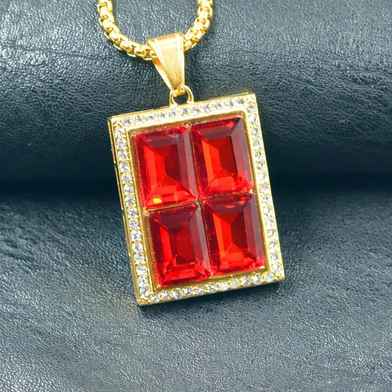 Новое модное мужское ожерелье золотистого цвета с подвеской в стиле хип-хоп, ювелирное изделие, красное, черное, микро проложить Большое Квадратное ожерелье с подвеской из камня 1 шт., OPP мешок