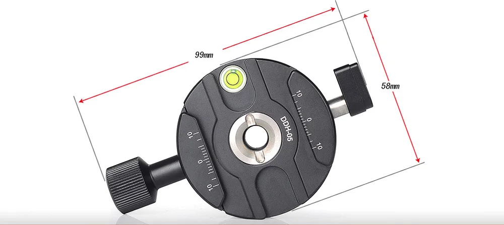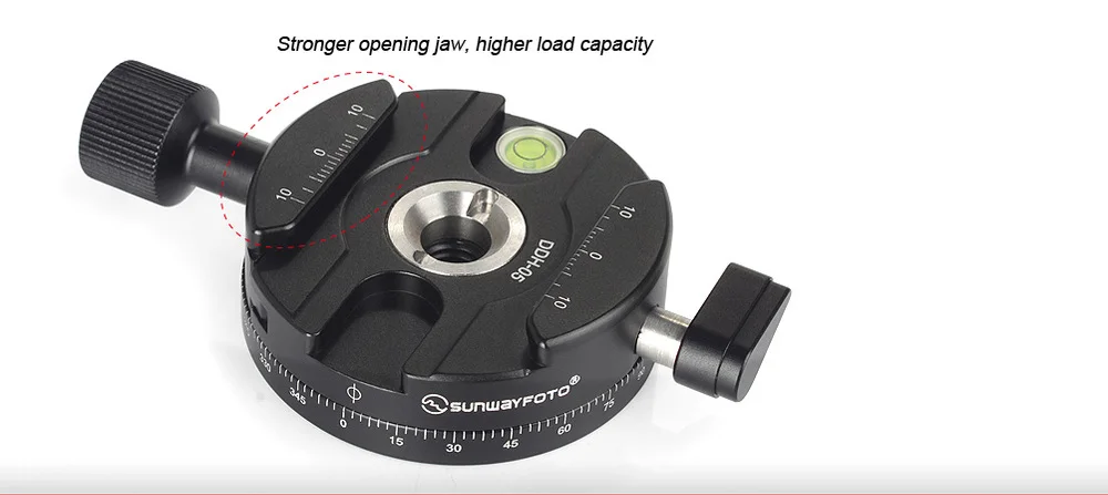 SUNWAYFOTO DDH-05 прецизионное основание с интегральным зажимом и пузырьковым уровнем для плавного и ровного панорамирования.