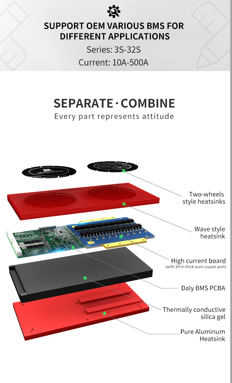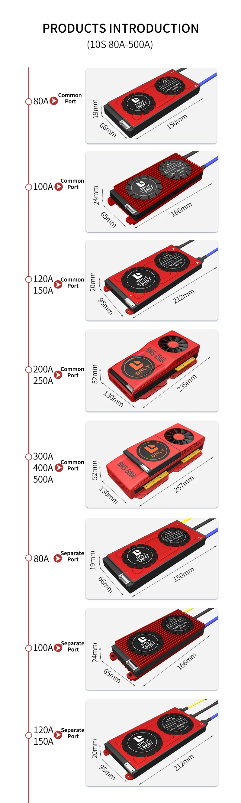 Изюминка: для той же модели ток заряда меньше, чем ток разряда, потому что Daly PCBAs были обновлены, чтобы хорошо защитить батарею клиента. По любому запросу, пожалуйста, свяжитесь с нами. Daly: январь 2020