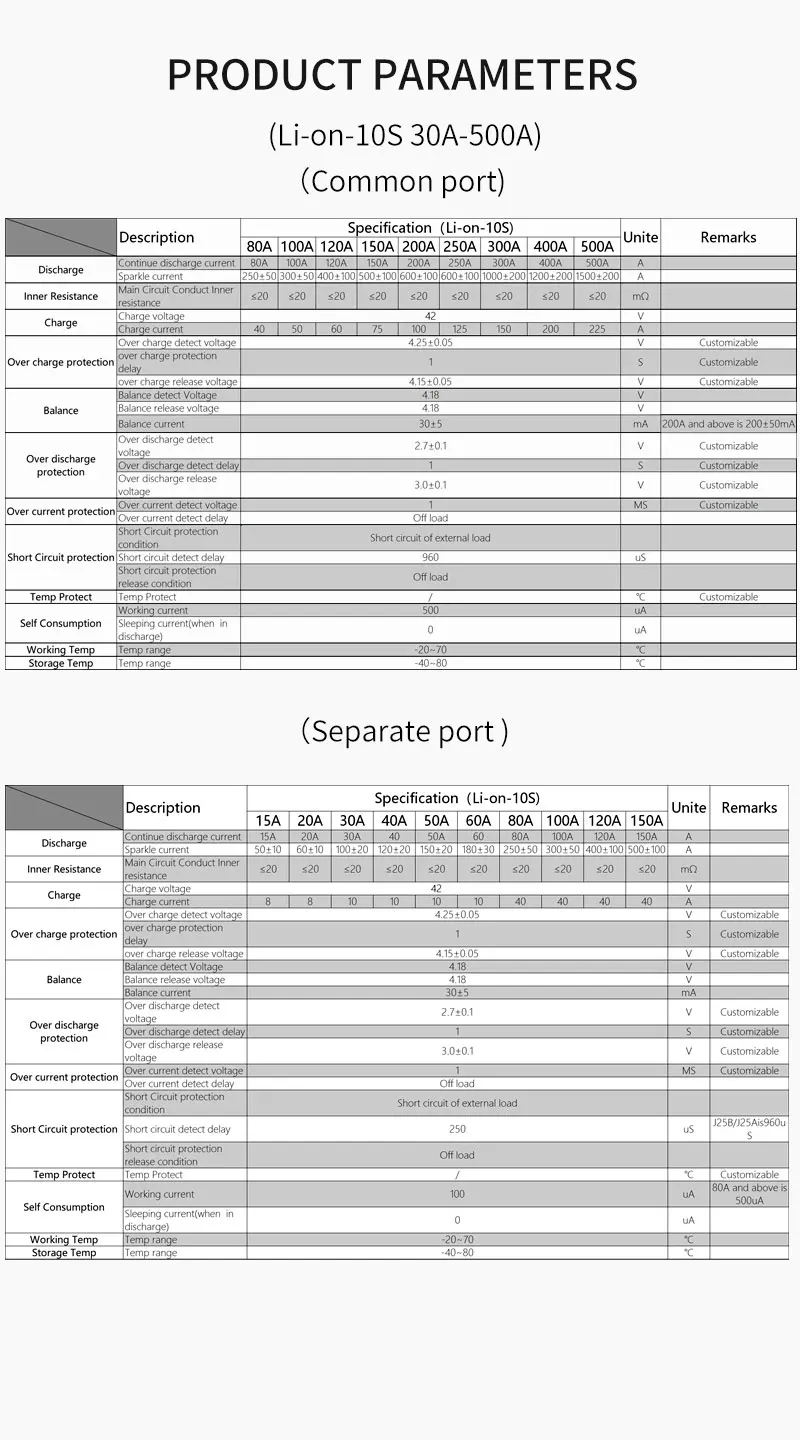 Мы можем настроить любой PCB от 1S до 30S литиевых батарей с разным током.