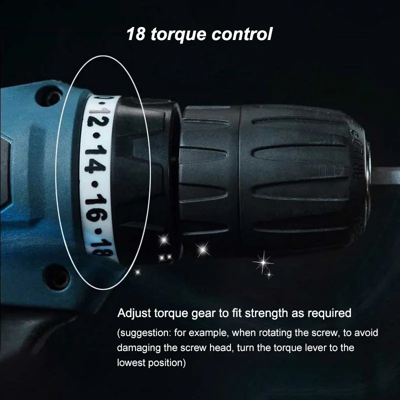 Информация о продукте: 1. Двусторонний. Автоматический дизайн картриджа. 2. Бесступенчатая. 3. 19 режимов регулировки крутящего момента. 4. Водонепроницаемый, капельный, утечка питания. 5. ECP: устройство защиты аккумулятора для предотвращения перегрузки батареи, перегрева и глубокой разрядки. 6. Интегрированный Светодиодный светильник для освещения рабочей зоны, также может использоваться в ночное время. 7. Скрученная мягкая ручка CST, обеспечивающая превосходное сцепление и ощущение комфорта. 8. Регулятор скорости "быстро-медленно" регулировки.