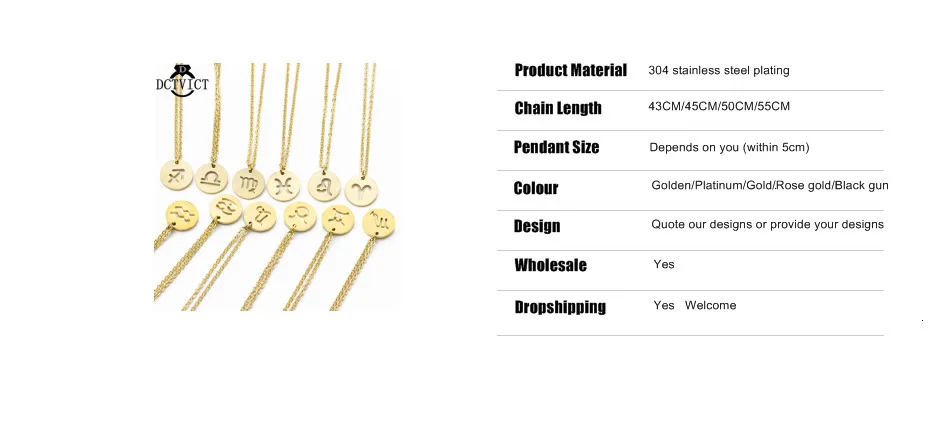10 шт./лот 12 созвездий Подвеска Ожерелье Бохо ювелирные изделия Золотой гороскоп