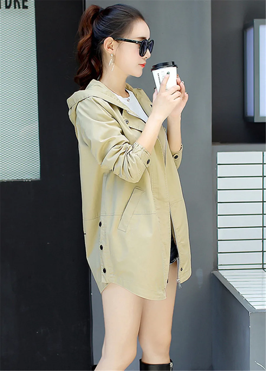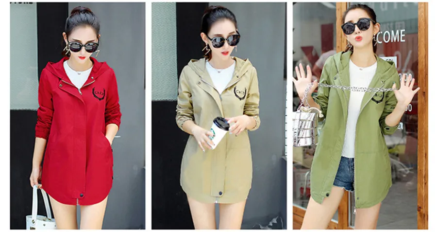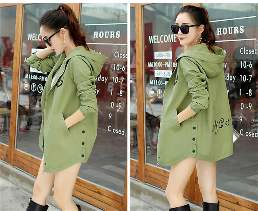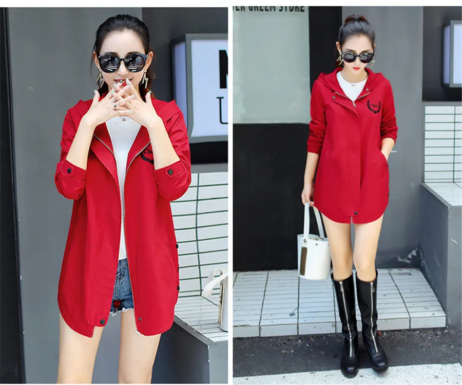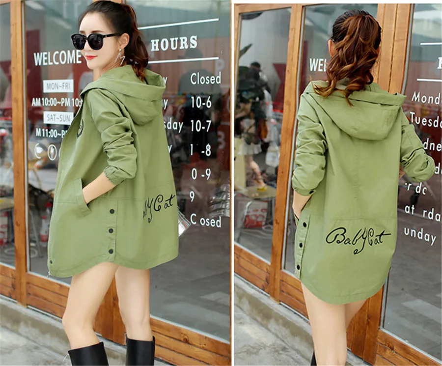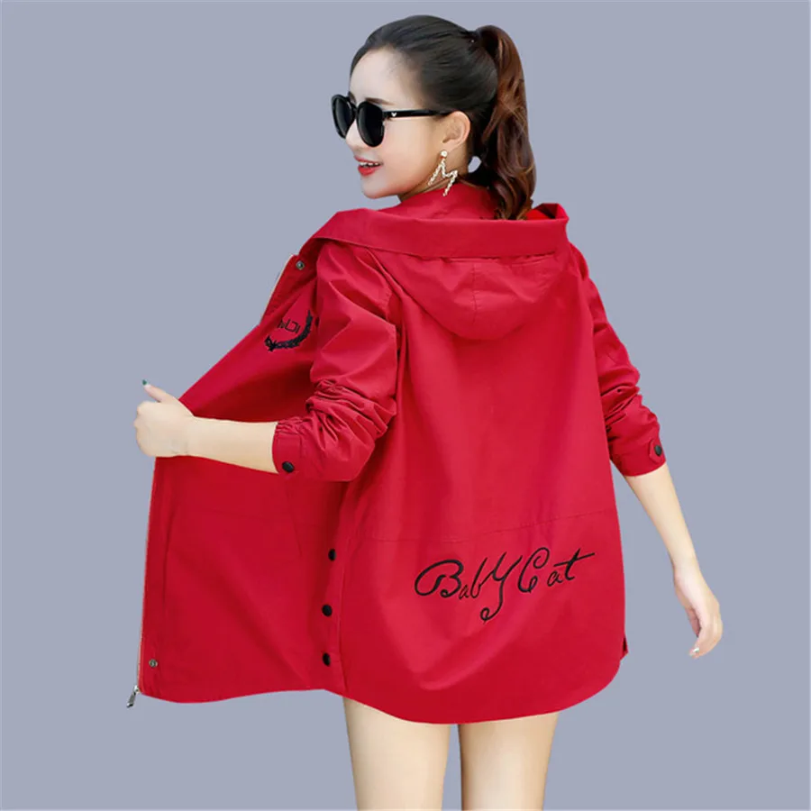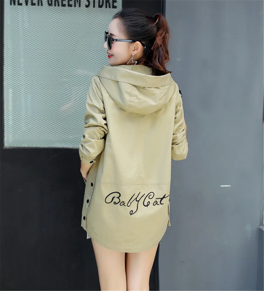 Новый осенний Тренч с буквенным принтом, женская тонкая ветровка с капюшоном и длинными рукавами, повседневный тонкий Тренч, Женский Большой Размер 3XL FC176